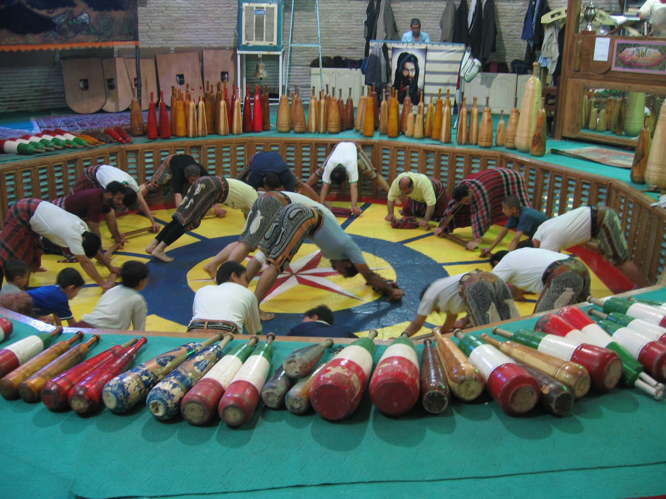 Participantes en la Casa de la Fuerza o Zurkhane, Yazd, Irán