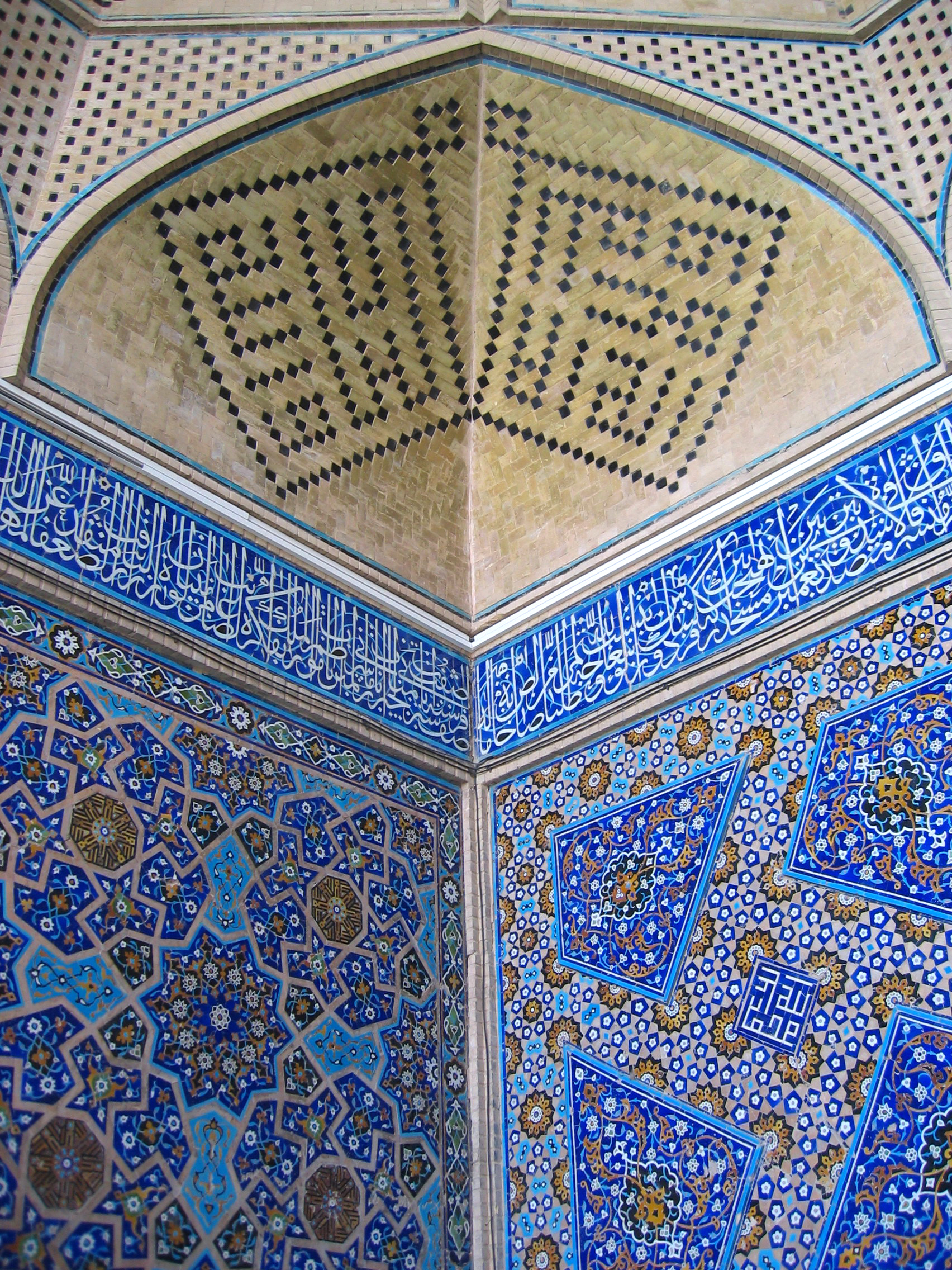 Esquina decorada de la mezquita del viernes, Isfahán, Irán