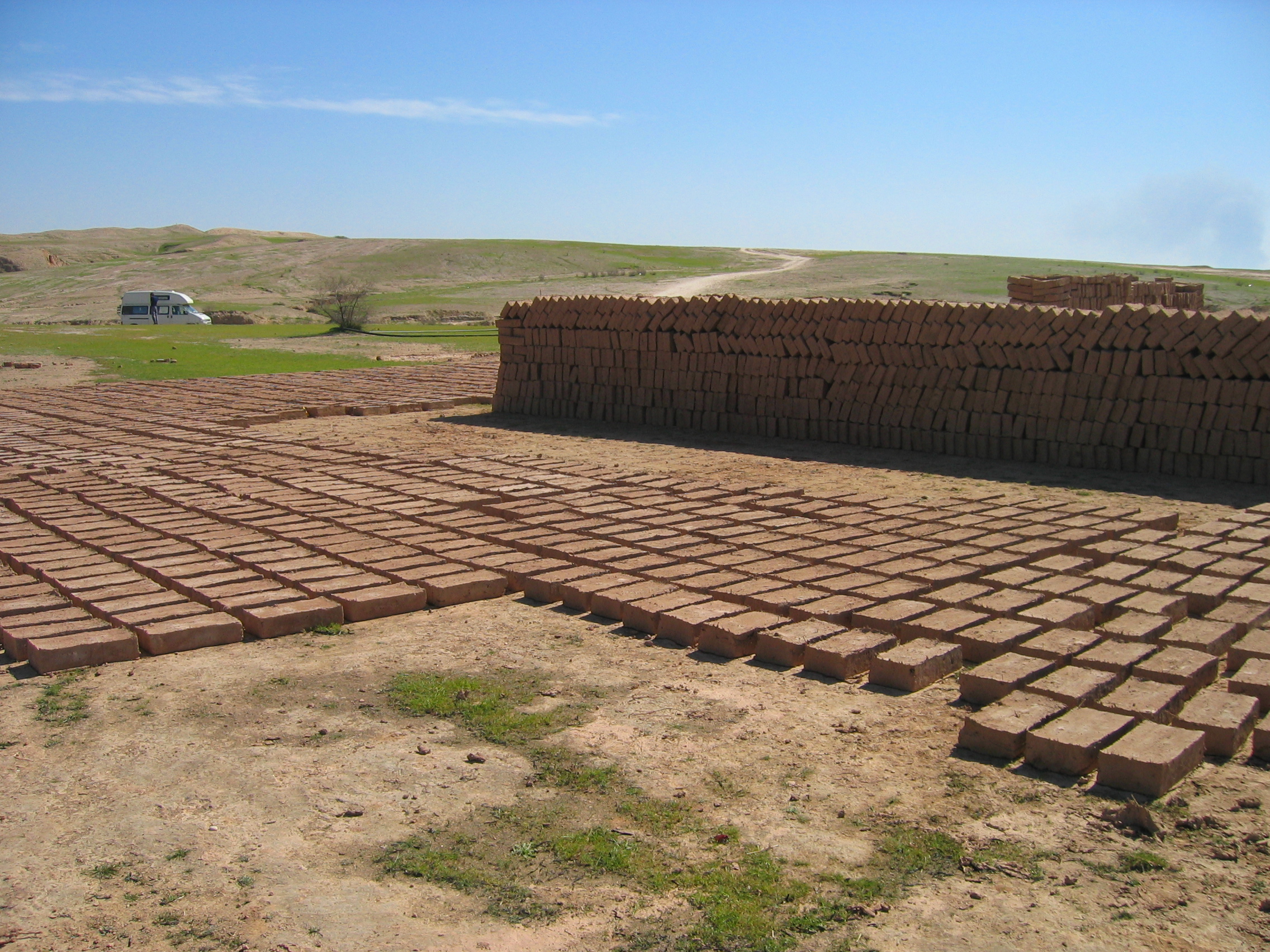 Ladrillos puestos a secar para la restauración del Zigurat de Chogha Zambil, Irán