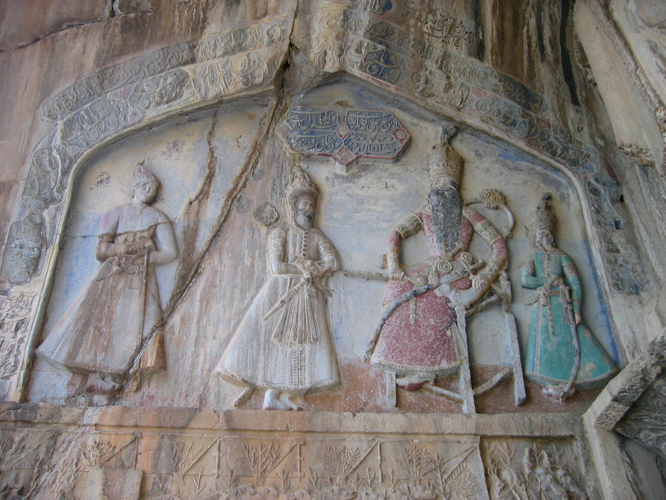 Relieves policromados en Taq-e Bostan, Kermanshah, Irán