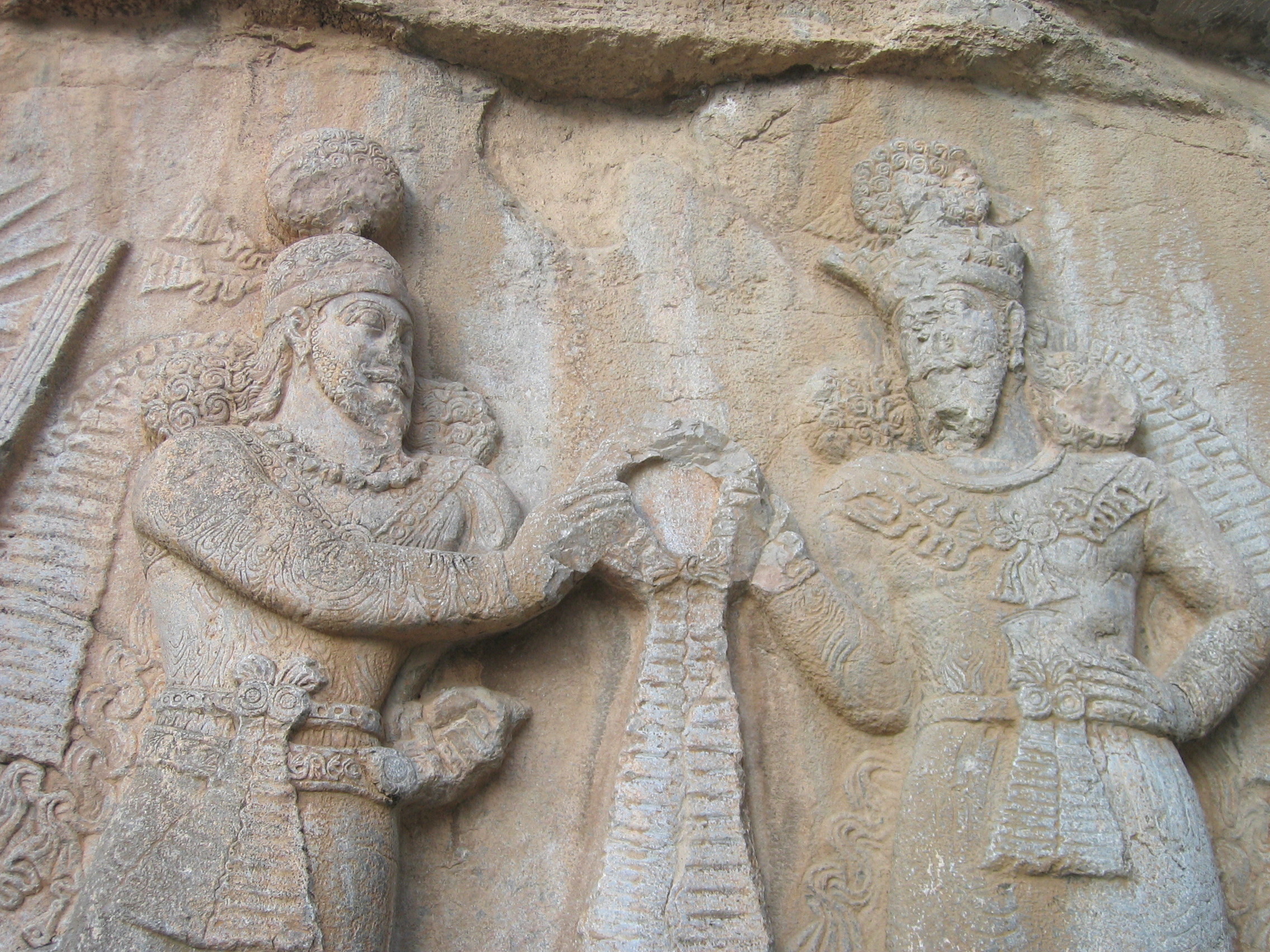 Detalle de la investidura del rey sasánida Ardashir II en Taq-e Bostan, Kermanshah, Irán