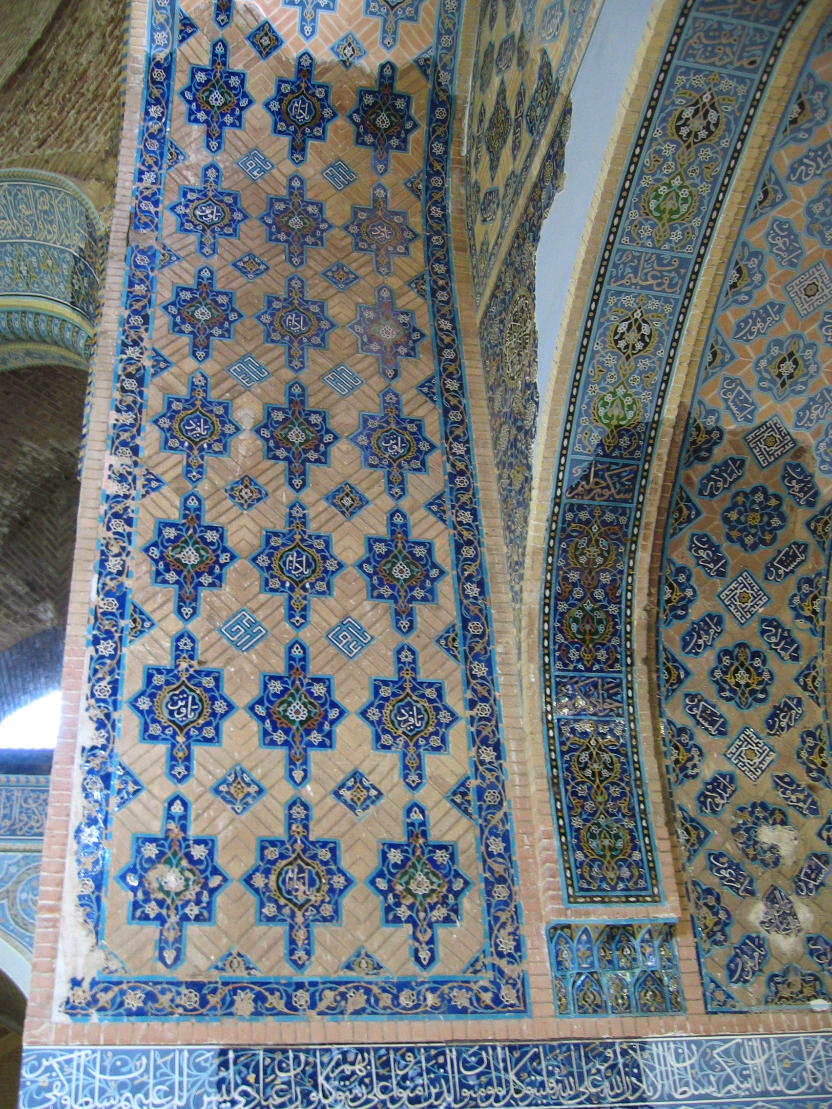 Detalle de decoración en arcada de Masjed-e Kabud o Mezquita Azul, Tabriz, Irán