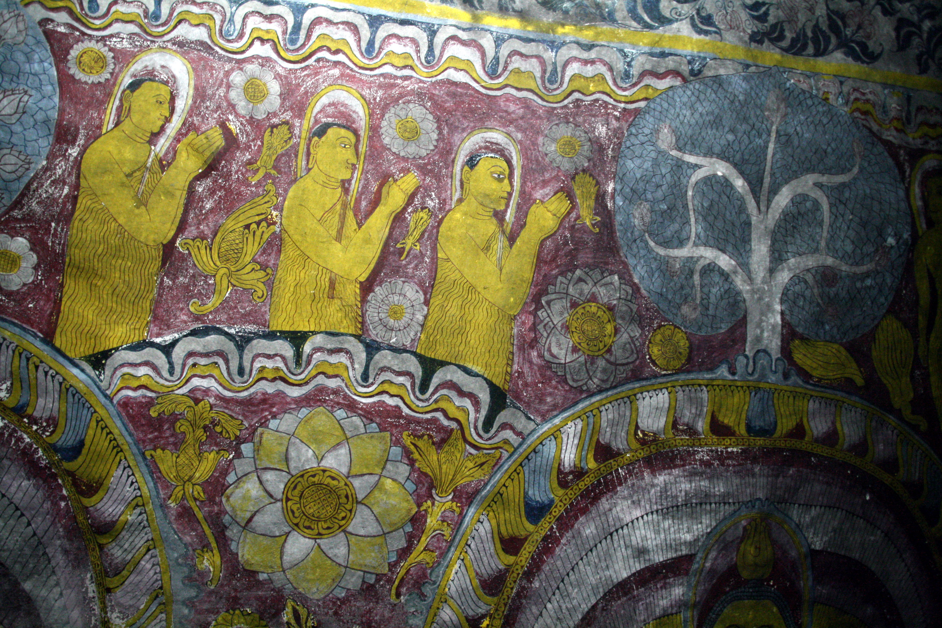 Detalle de fresco en las cuevas de Dambulla, Sri Lanka