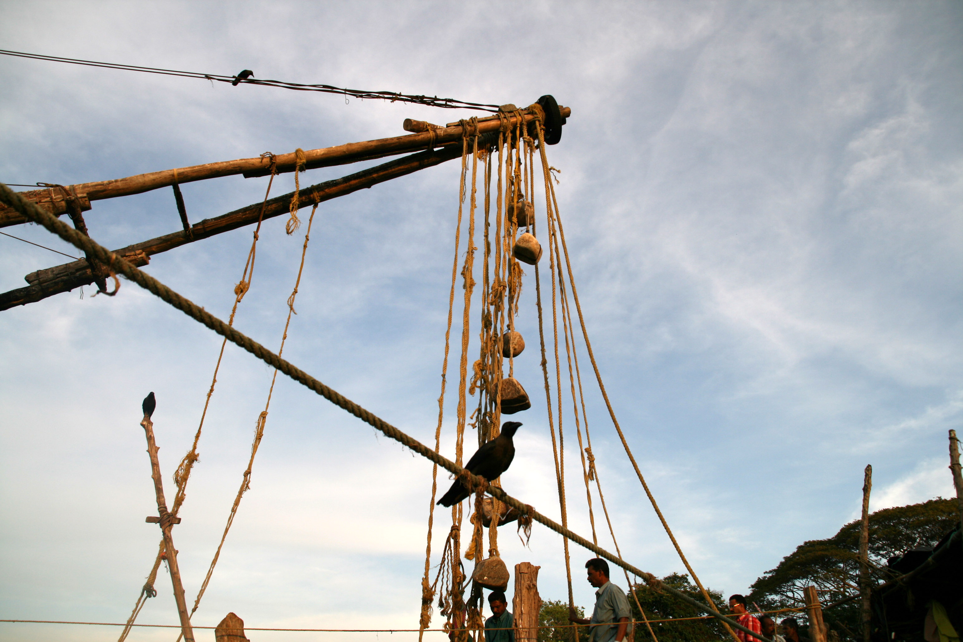 Detalle de contrapesos de una red china en Cochin, Kerala, India