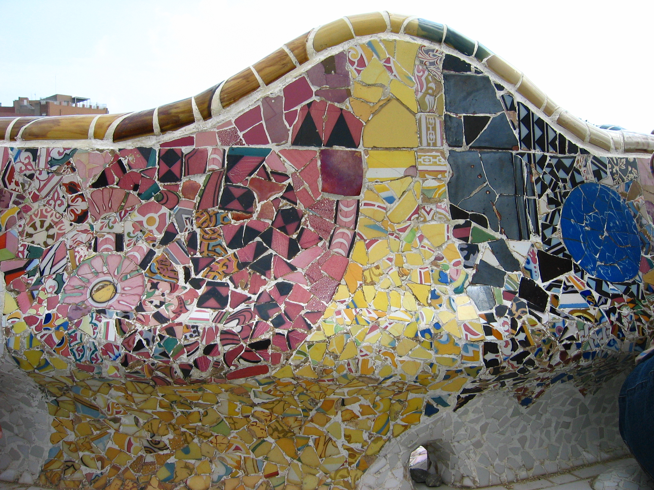 Detalle del banco serpenteante de la Gran Plaza, Parque Güell, Barcelona