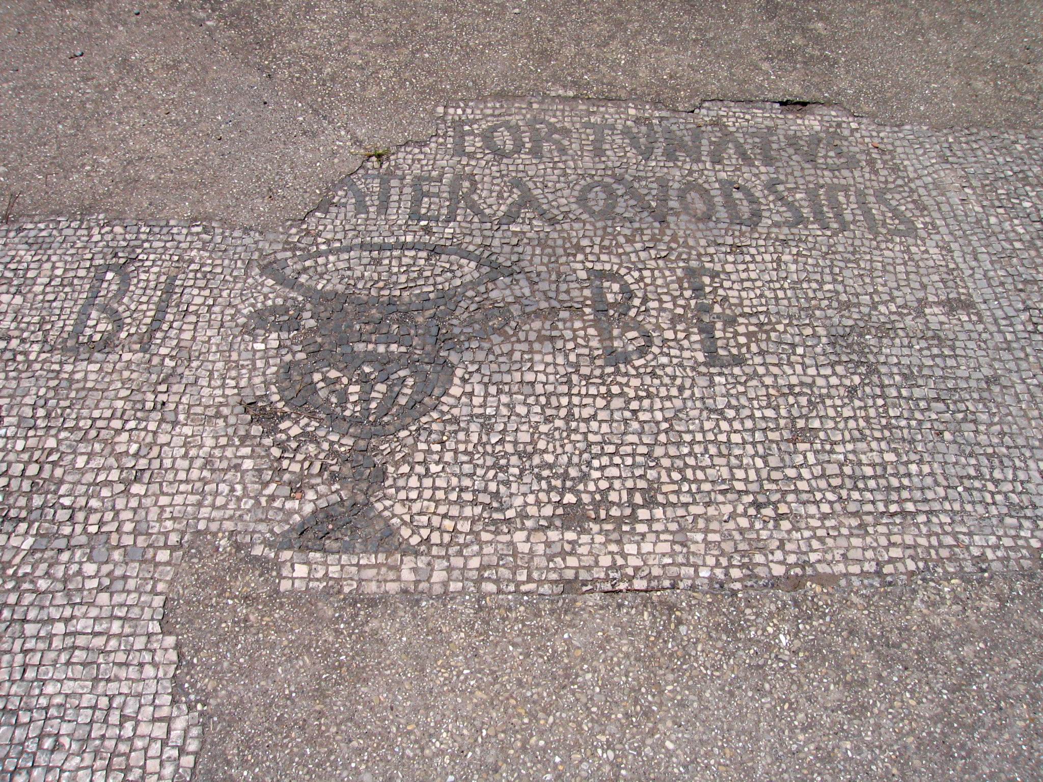Mosaico de bar romano incitando a beber, Ostia Antica, Roma