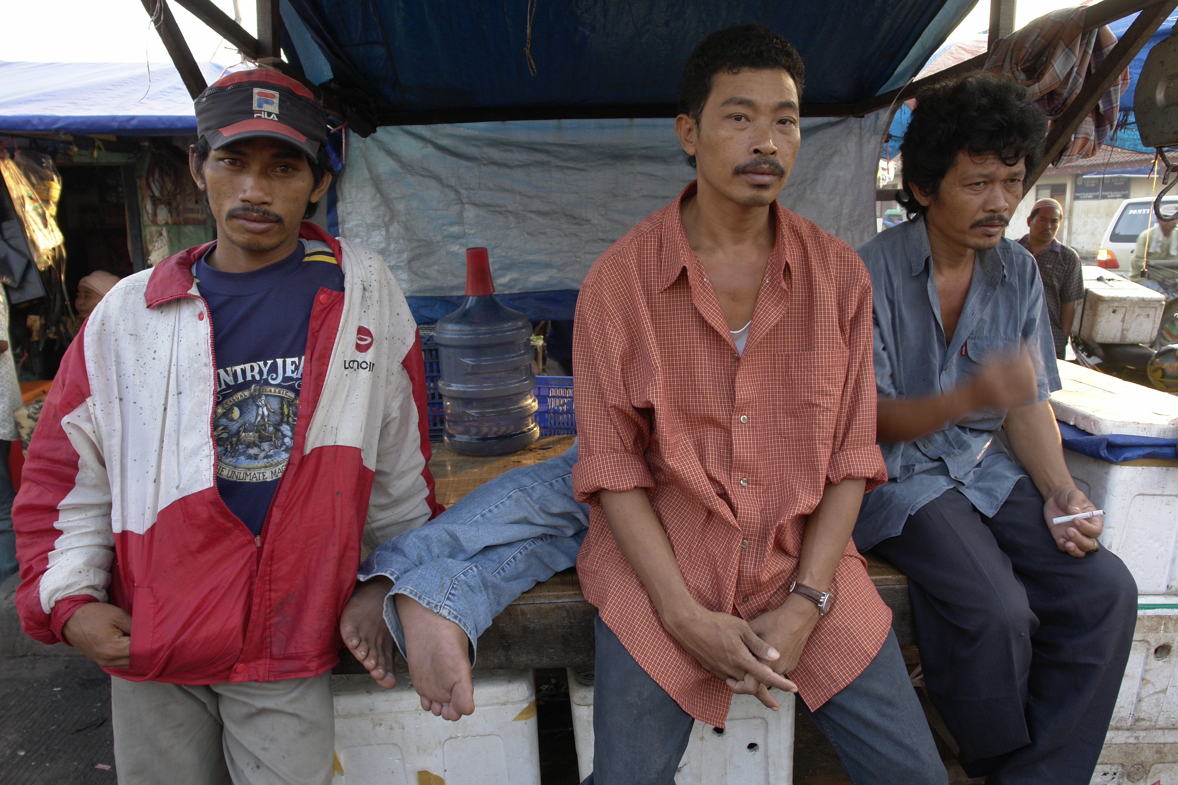 Descansando en el puerto de Muara Angke, Yakarta, Indonesia