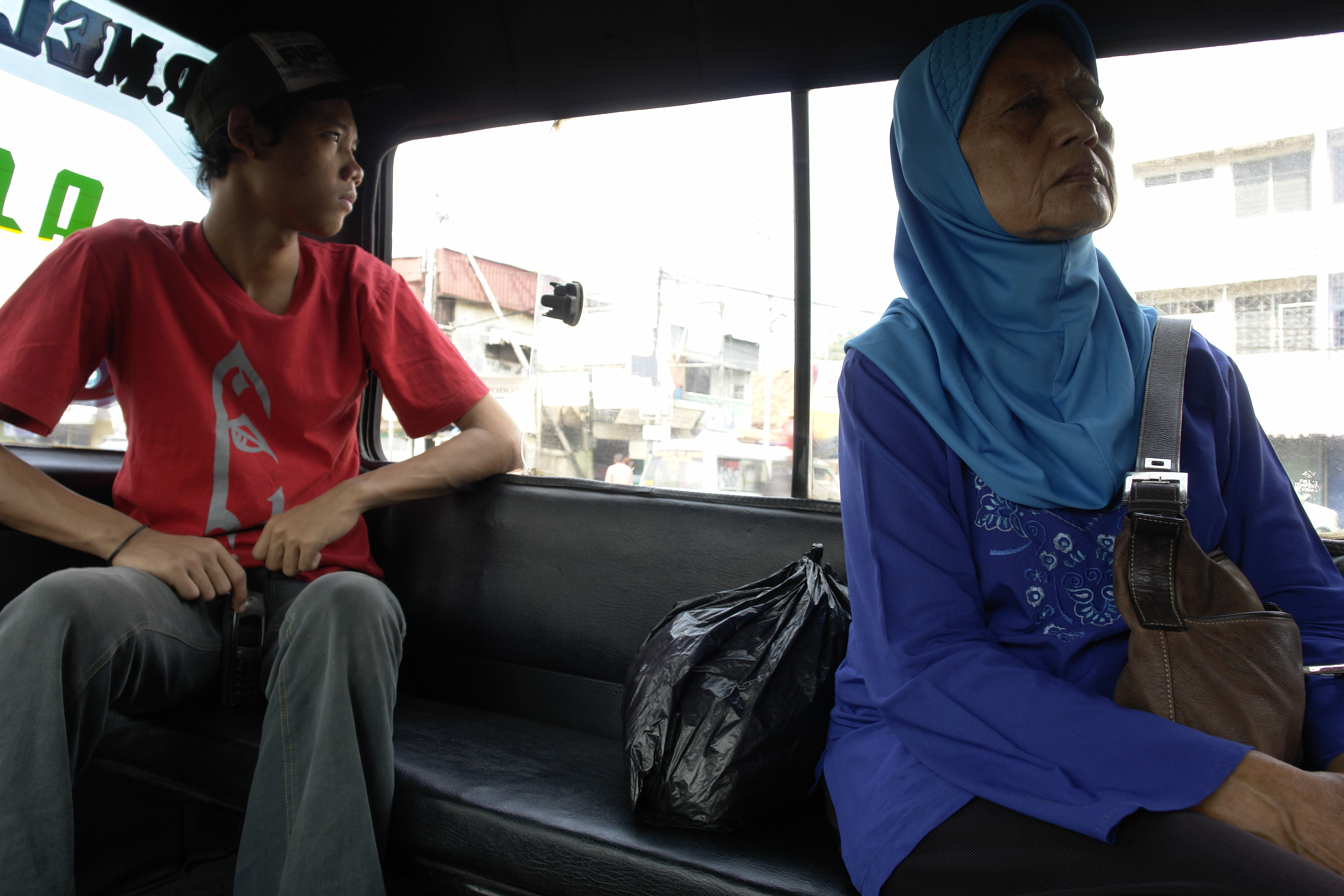 Interior de microlet, Yakarta, Indonesia