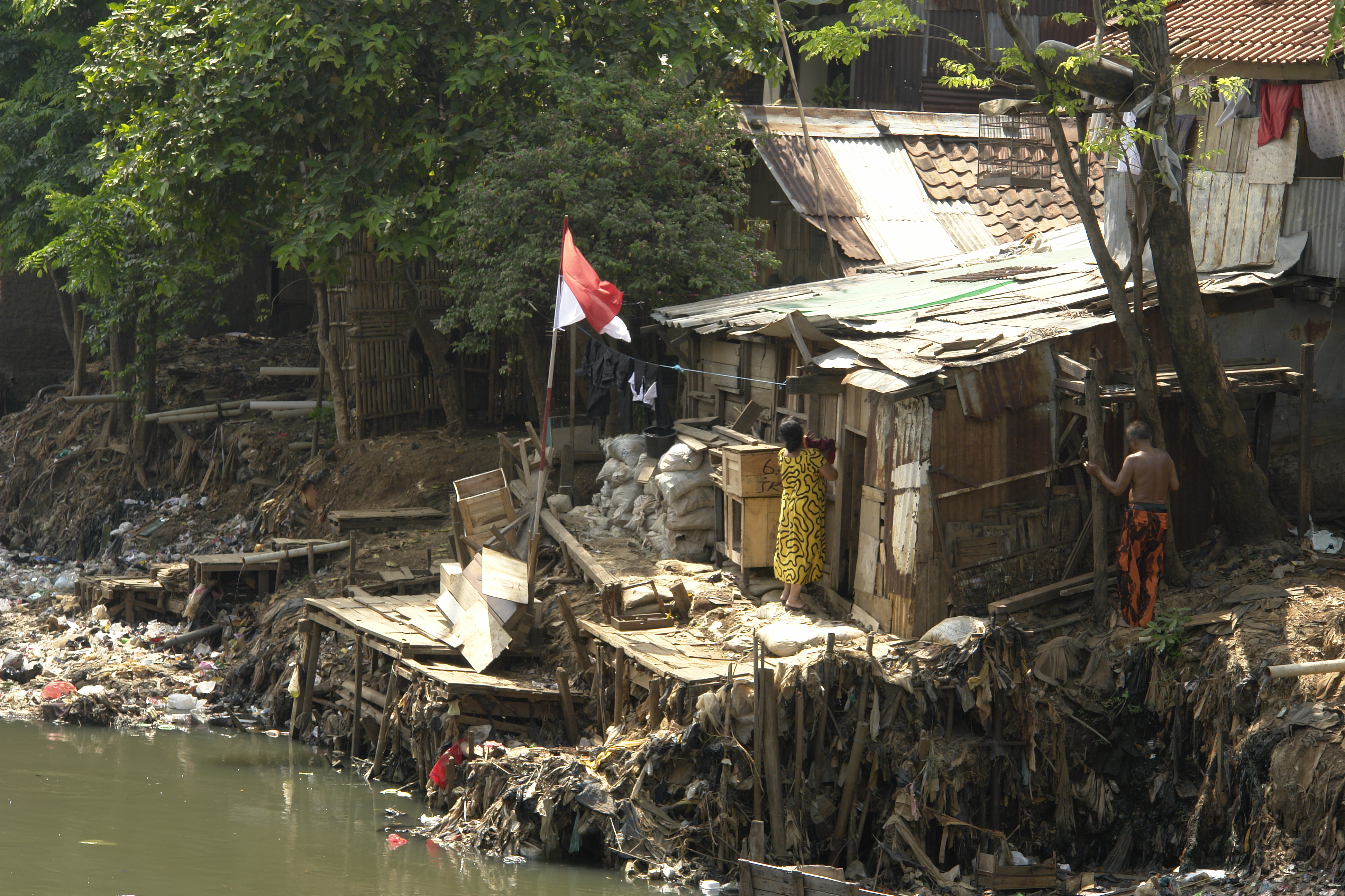 Chabolas en el barrio de Ciliwung, Yakarta, Indonesia