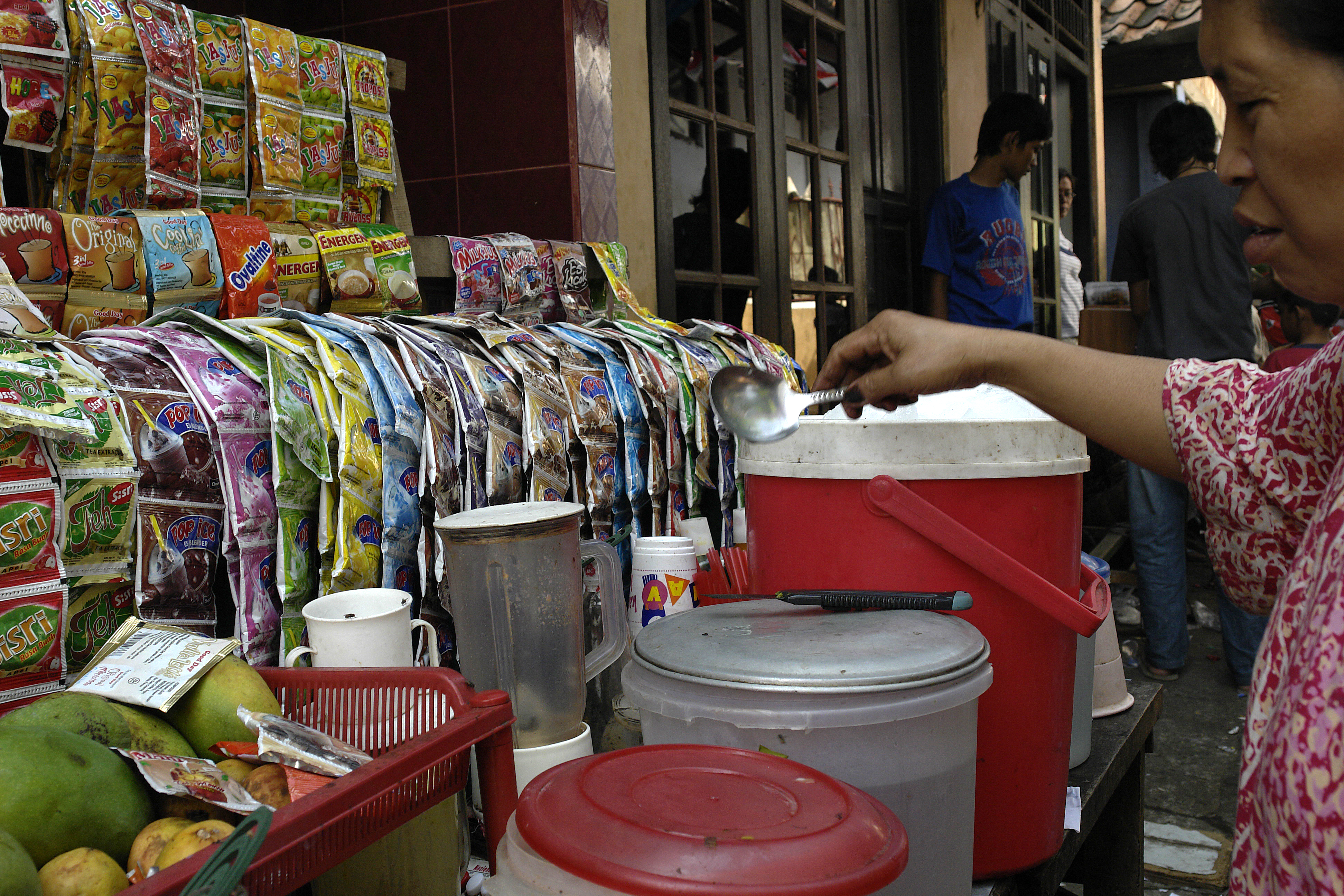 Preparando refrescos en el barrio de Ciliwung, Yakarta, Indonesia