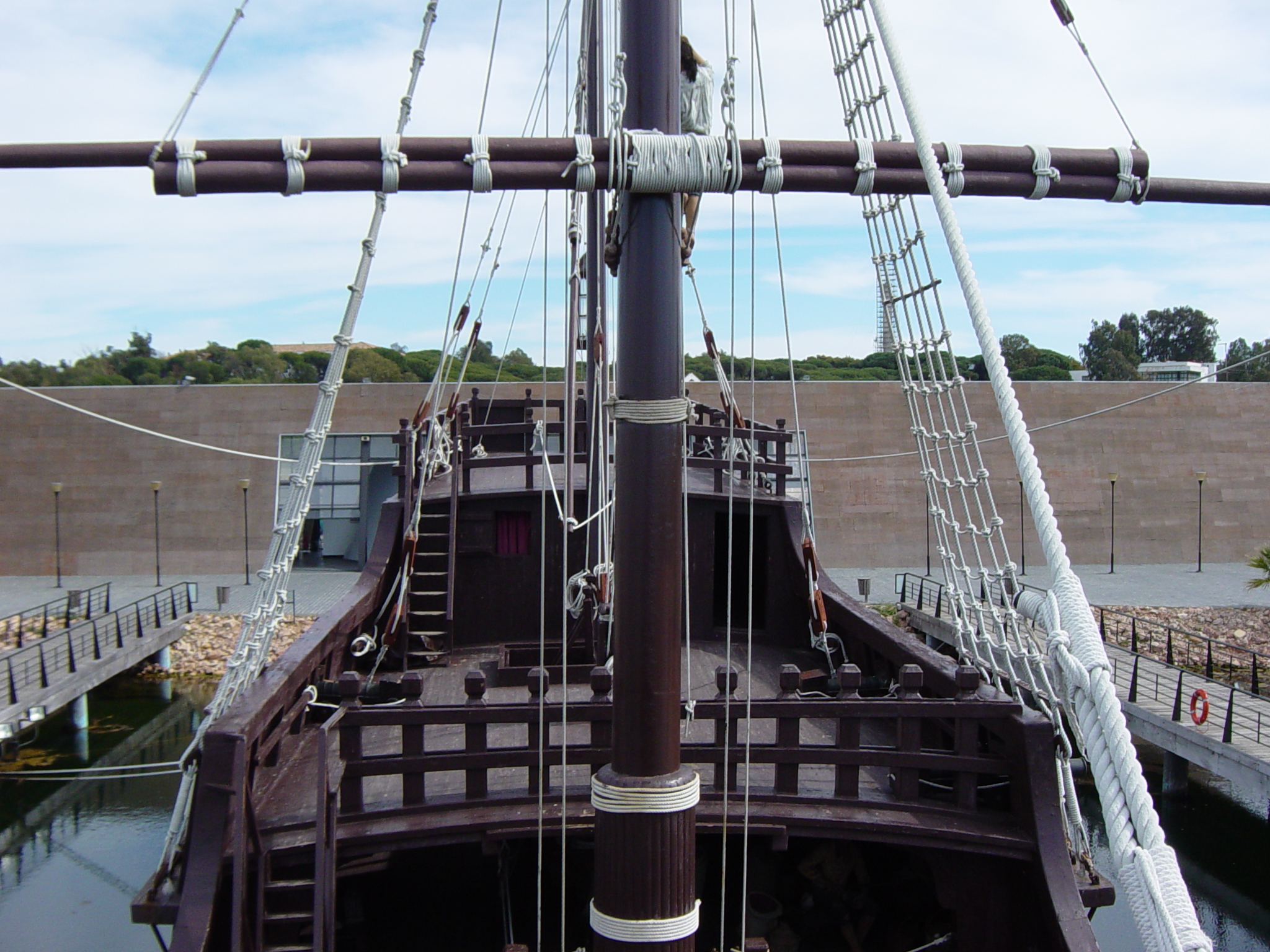 Cubierta de la Santa María desde proa, Muelle de las Carabelas, Palos de la Frontera, Huelva