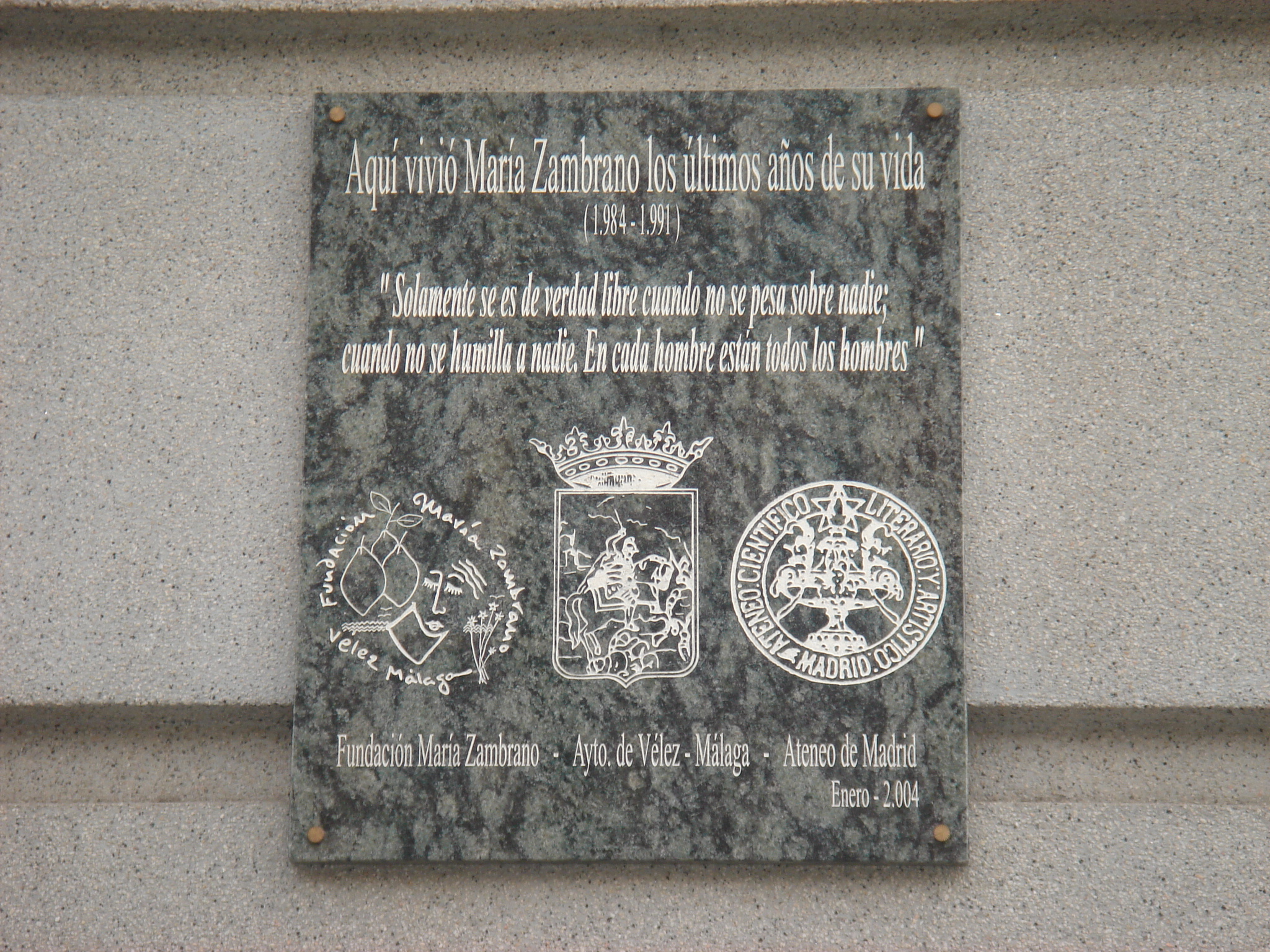 Placa en la casa de María Zambrano