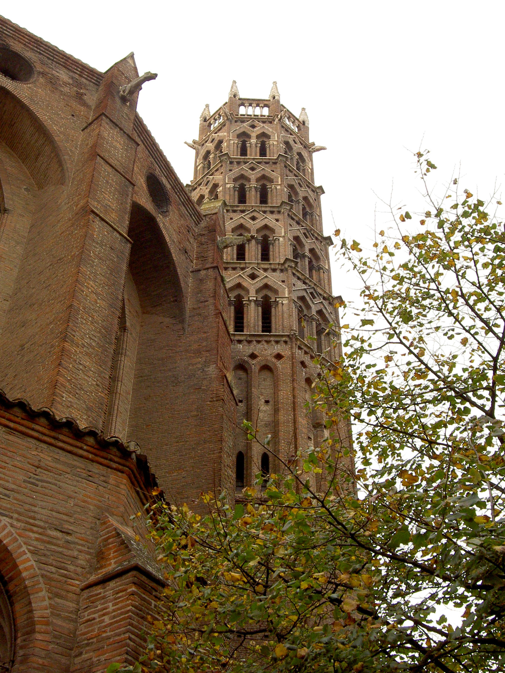 Torre campanario del Convento de los Jacobinos o Conjunto Conventual de los Jacobinos de Toulouse en Francia del siglo XIII, de ladrillo.