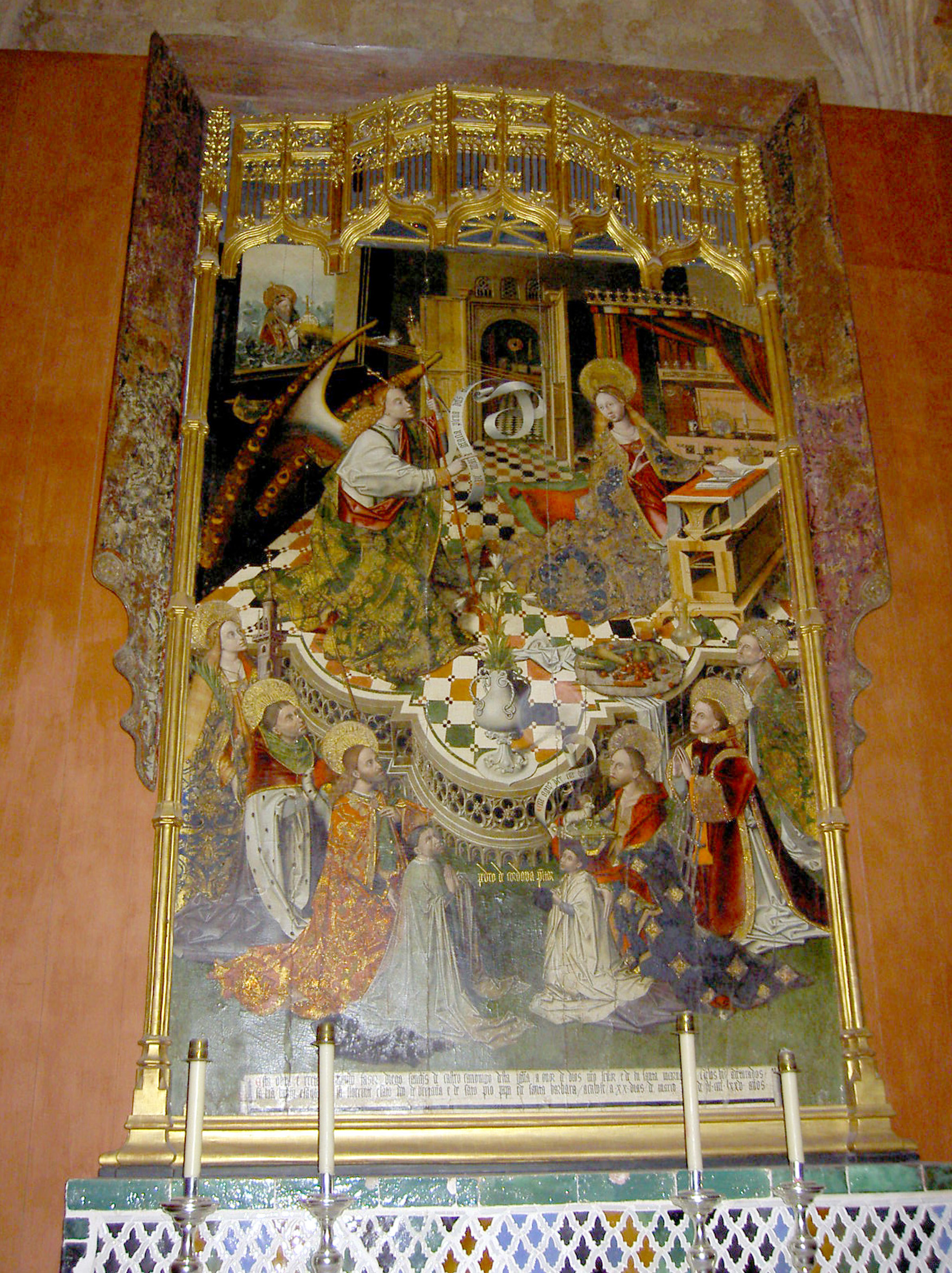Altar de la Encarnación, óleo sobre tabla de estilo flamenco realizado por Pedro de Córdoba, situado en la Mezquita Catedral de Córdoba. La pieza central muestra al arcángel Gabriel en el momento de la Anunciación a la Virgen María, portando además una cinta donde se lee "Ave Maria gratia plena". En la ventana se muestra también la presencia del Espíritu Santo y el Padre Eterno, simbolizado en una figura masculina, con un orbe en el que se lee "Asia" y "África". Justo debajo de esta escena aparecen ocho figuras que muestran, de izquierda a derecha, los personajes de Santa Bárbara, San Ivo de Bretaña, Santiago, el patrono de la obra Diego Sánchez, el canónigo Juan Muñoz, primer fundador del altar, San Juan Bautista, San Lorenzo y San Pío I. Cada uno de los patronos es presentado por su santo homónimo: Diego proviene de Sant lago.