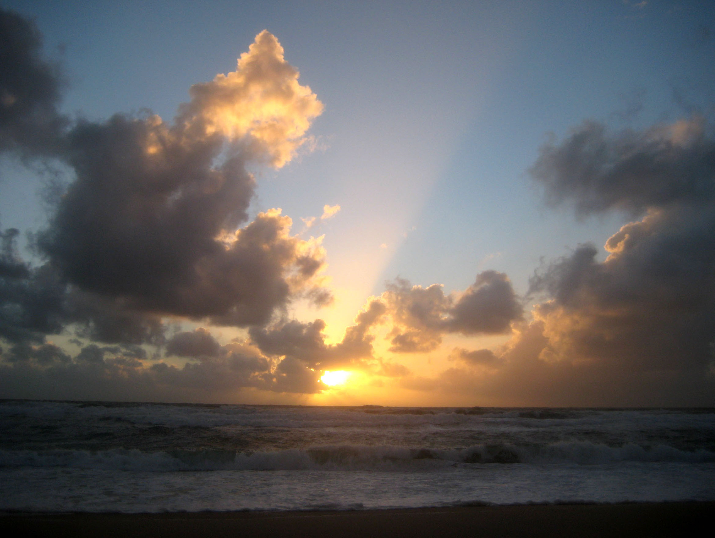 Puesta de sol en la playa del cabo Ferret de la costa atlántica de Francia.
