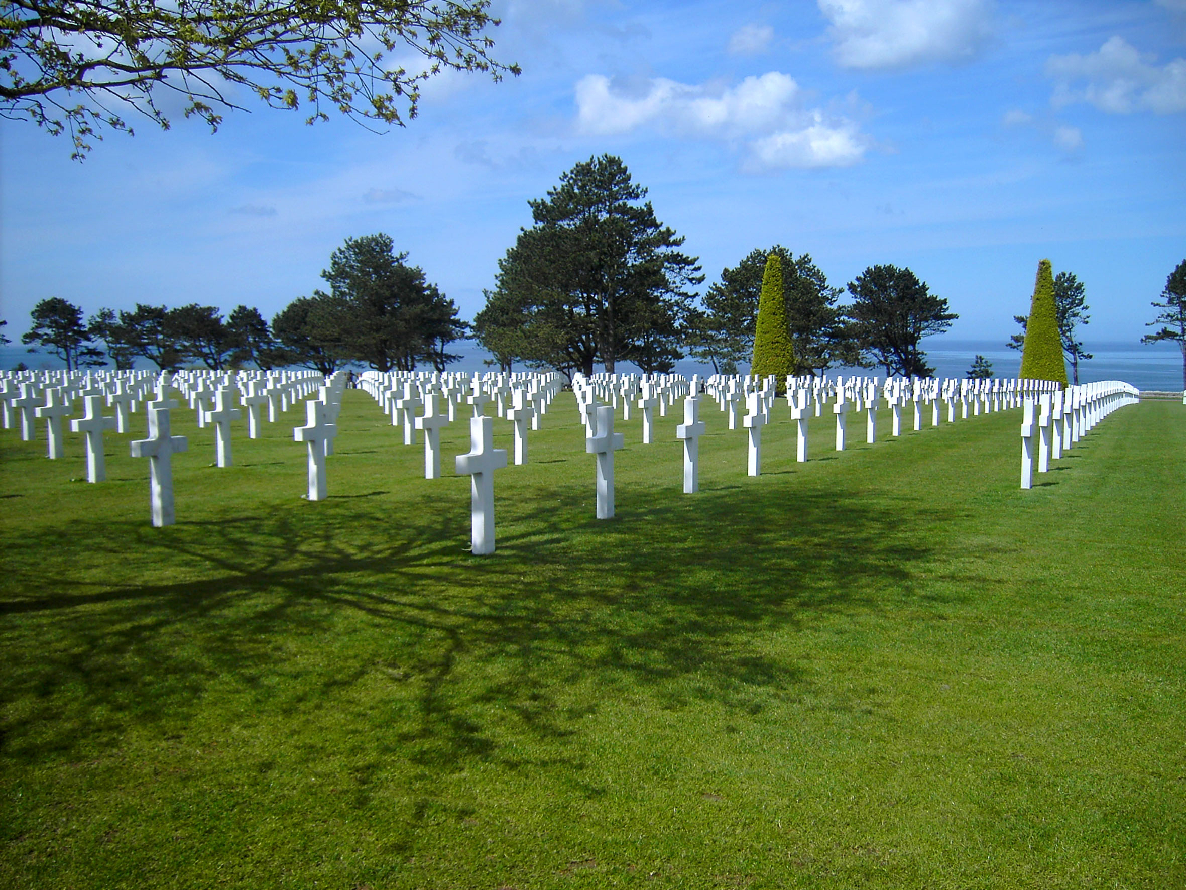 Lápidas del Cementerio Americano de Normandía. Cementerio y memorial de la Segunda Guerra Mundial, en Colleville-sur-Mer, Francia, que honra a los soldados estadounidenses muertos en la guerra.