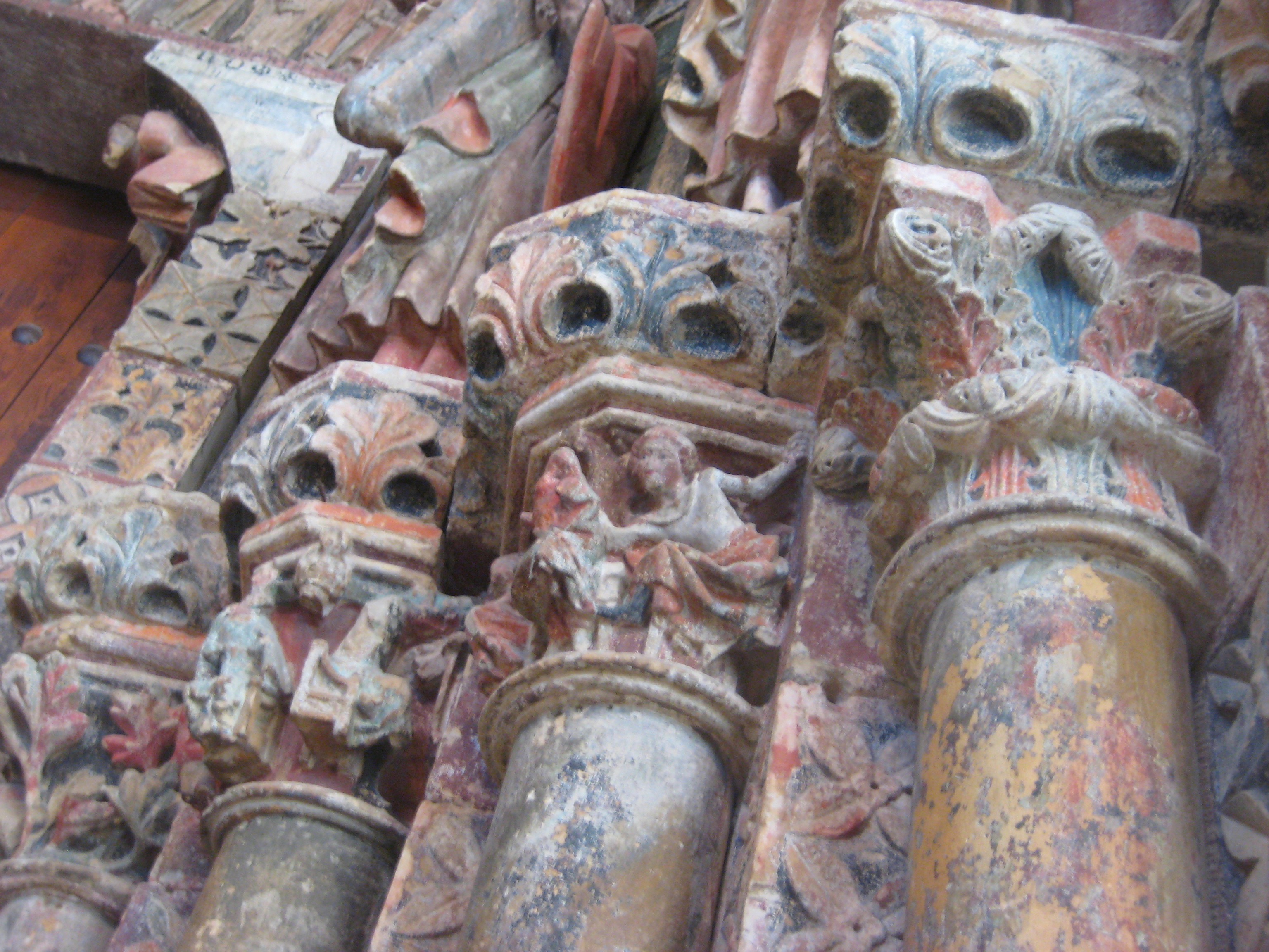Detalle de las columnas del pórtico policromado de la Colegiata de Santa María la Mayor en Toro, Zamora.