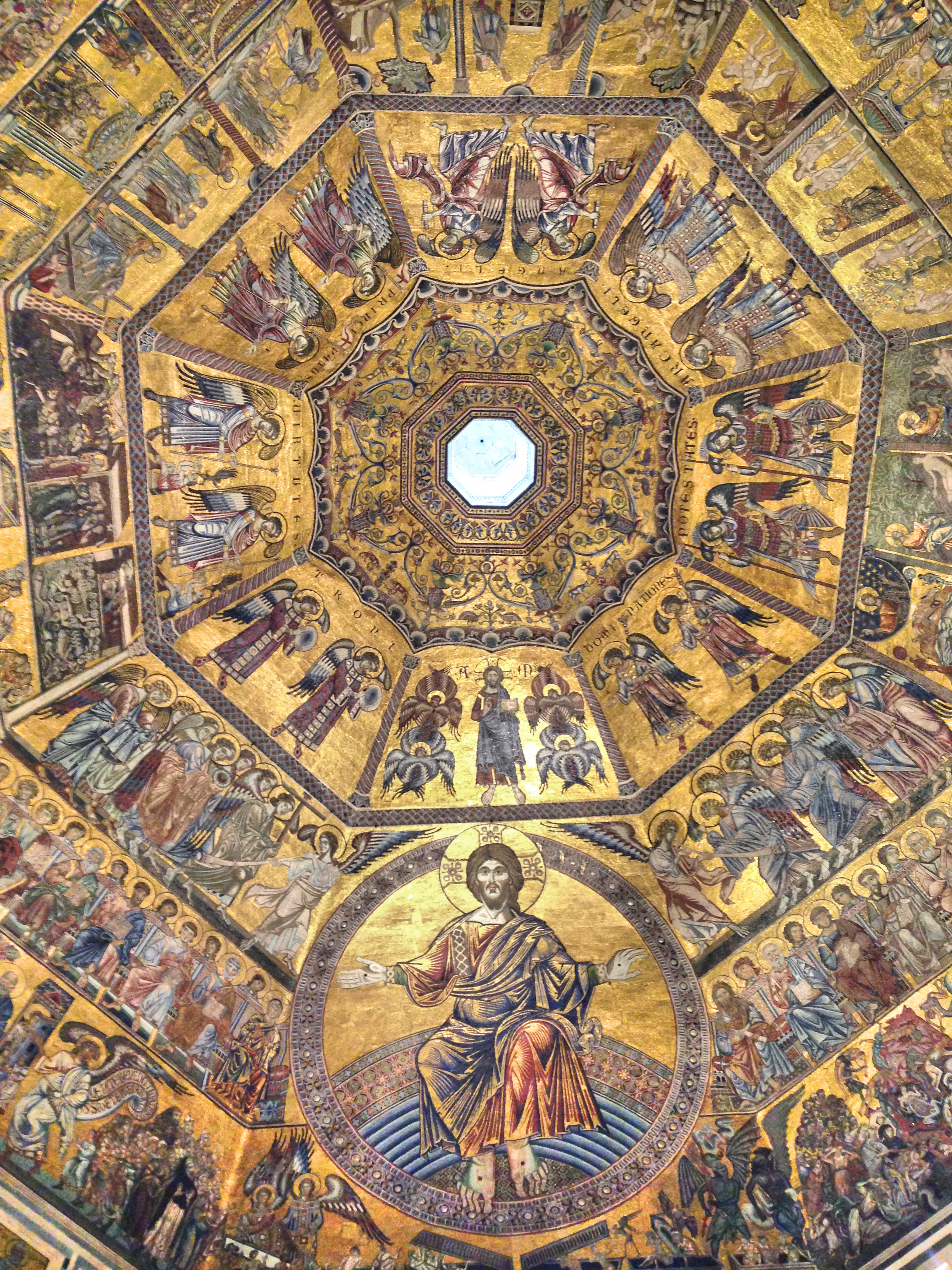 Mosaico con escenas bíblicas y el pantocrátor de la bóveda del baptisterio de Florencia