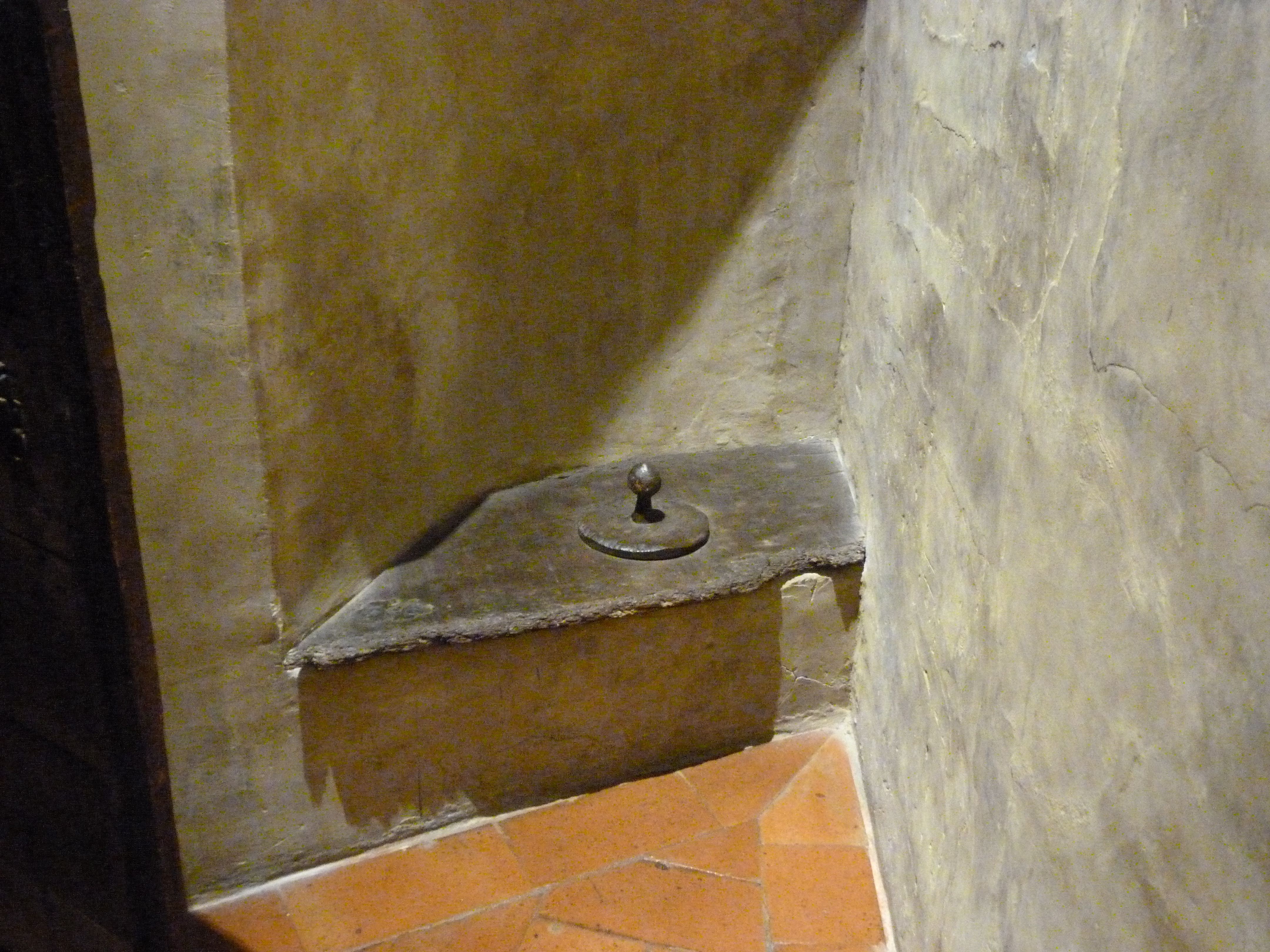 Retrete del palacio Davanzati (1500 D.E.C.). El Palazzo Davanzati es uno de los palacios más antiguos de la ciudad de Florencia. Aunque fue construido en el siglo XIII, la familia que le da nombre no lo compraría hasta el XVI. Al ser una construcción previa al renacimiento y con su buen estado de conservación, el Palazzo Davanzati es uno de los ejemplos clave de arquitectura civil de la Florencia medieval.