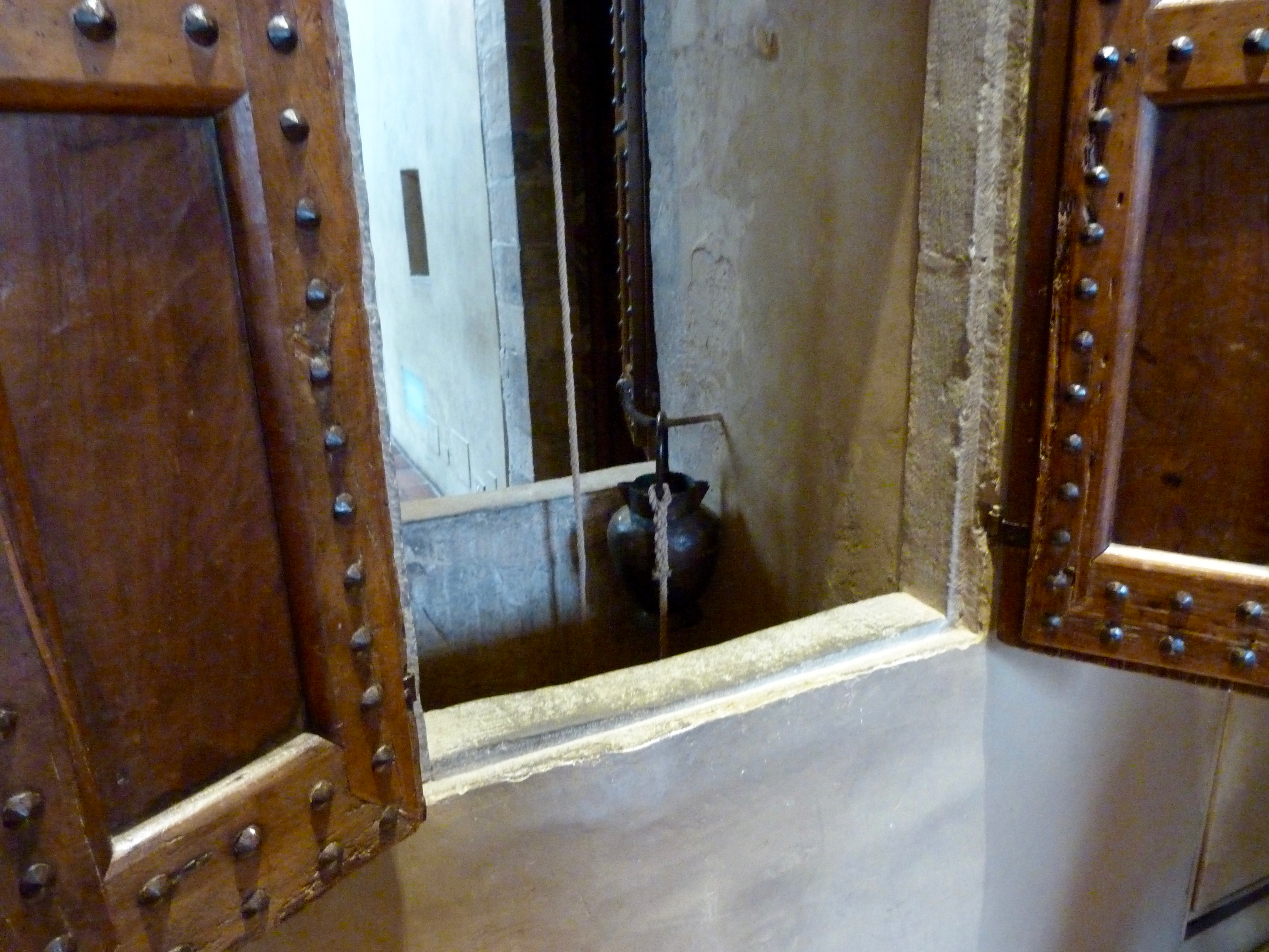 Montaplatos del palacio Davanzati. El Palazzo Davanzati es uno de los palacios más antiguos de la ciudad de Florencia. Aunque fue construido en el siglo XIII, la familia que le da nombre no lo compraría hasta el XVI. Al ser una construcción previa al renacimiento y con su buen estado de conservación, el Palazzo Davanzati es uno de los ejemplos clave de arquitectura civil de la Florencia medieval.