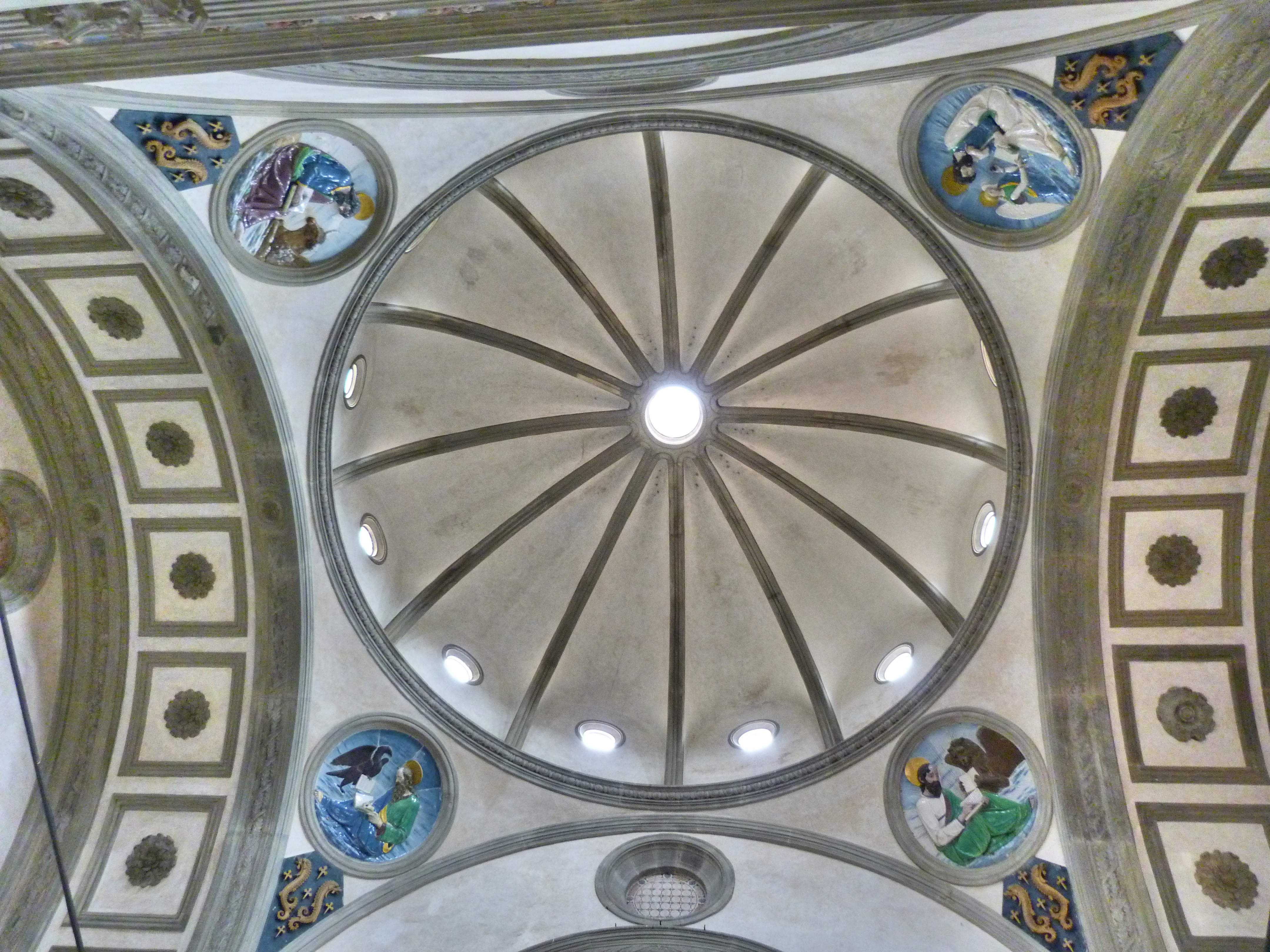 Bóveda con pechinas decoradas de la capilla Pazzi en Florencia.