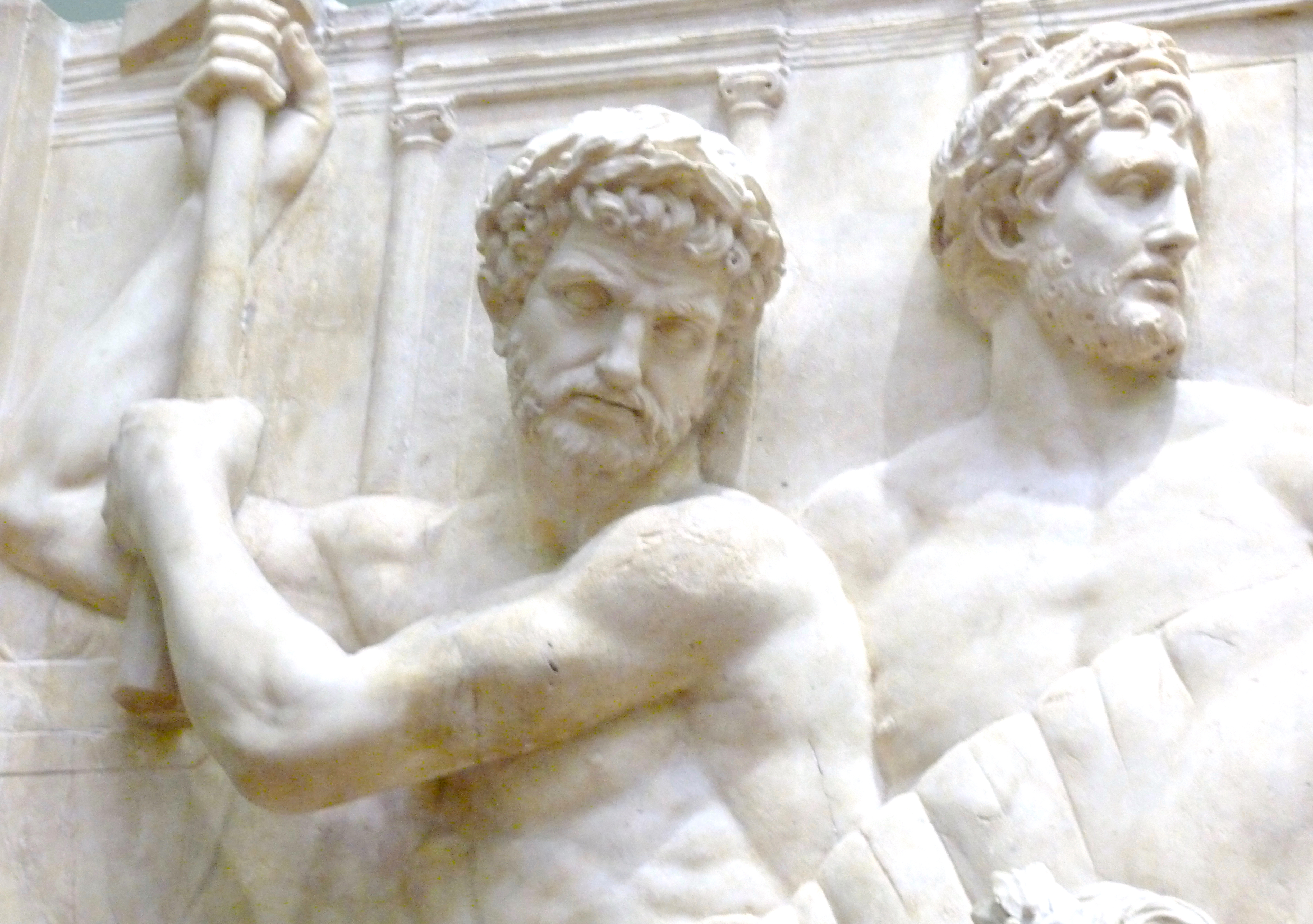 Relieve de dos varones trabajando en la Galería de los Uffizi