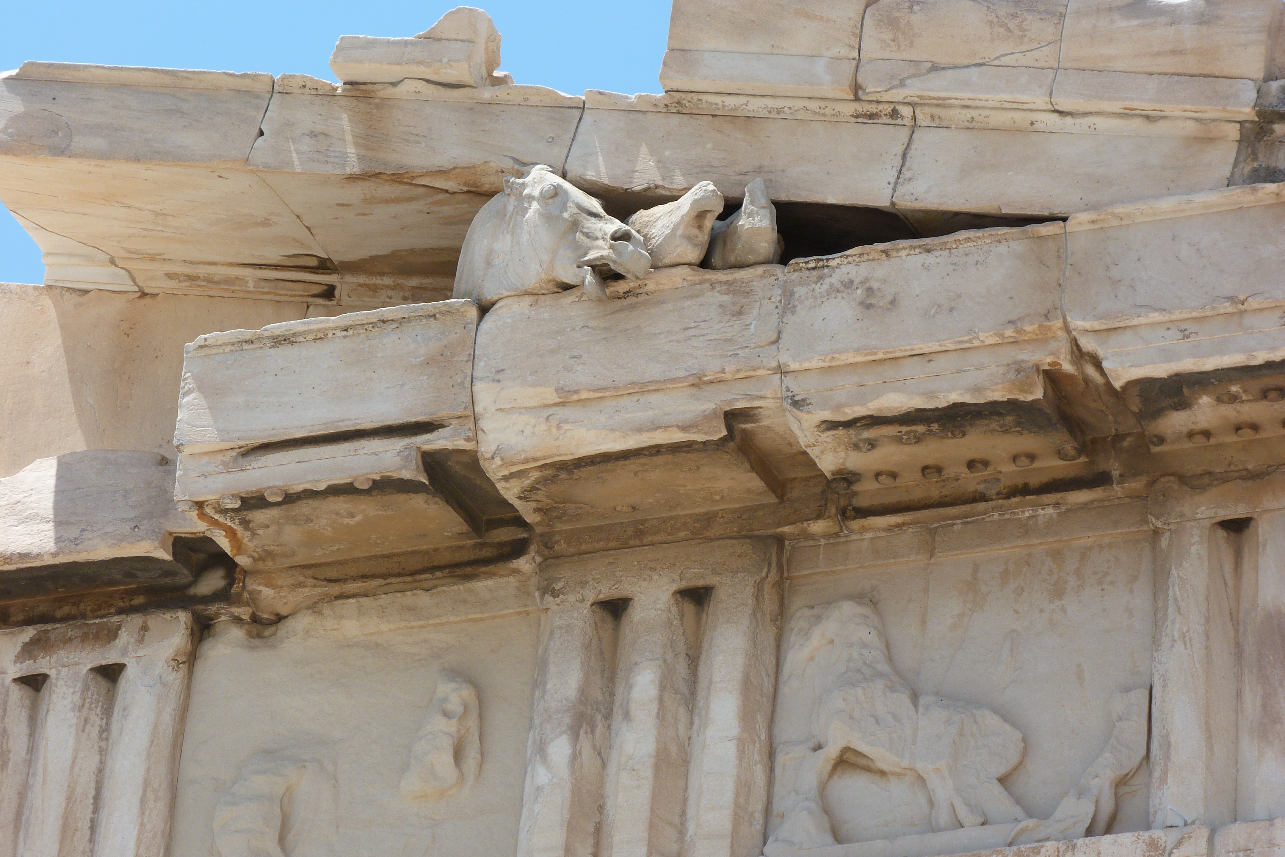 Escultura de la cabeza de un caballo en el Partenón de Atenas de Calicrates e Ictinios