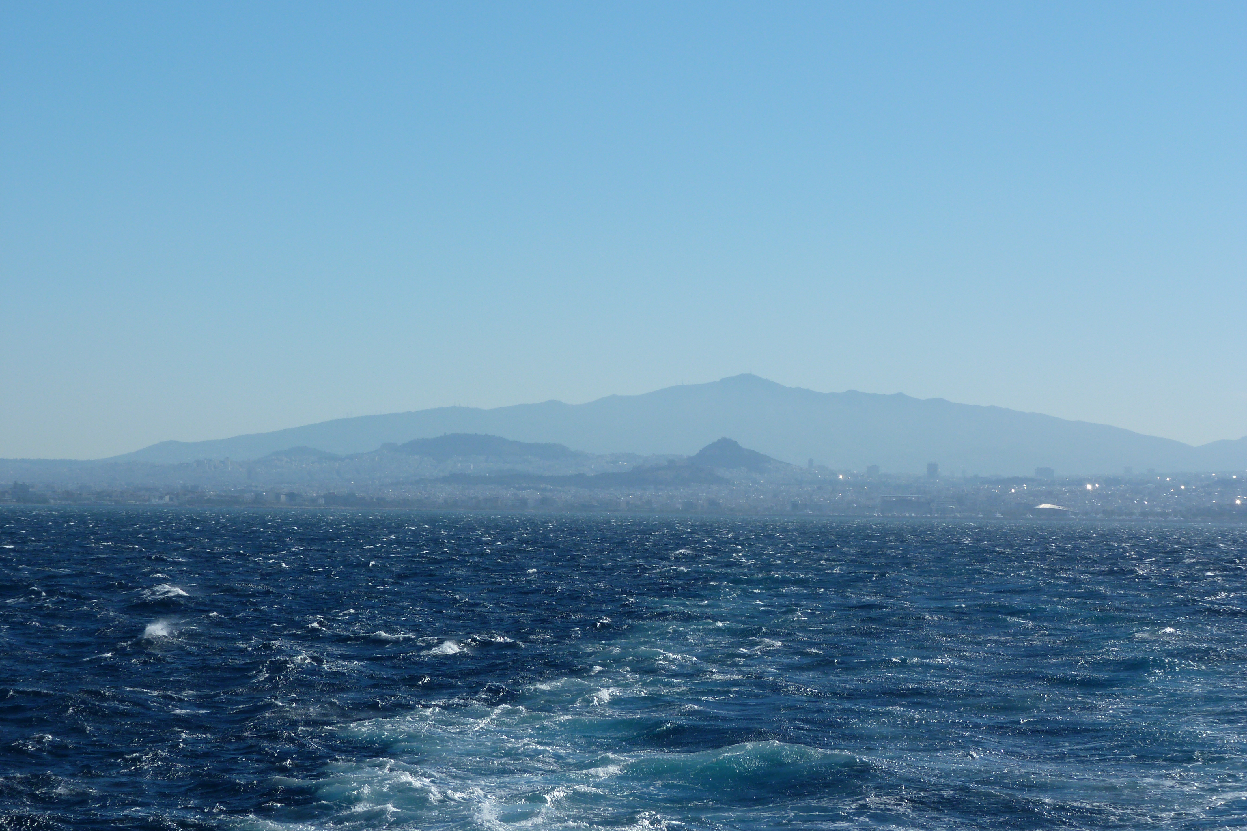El Pireo y el mar egeo visto desde el ferry, Atenas