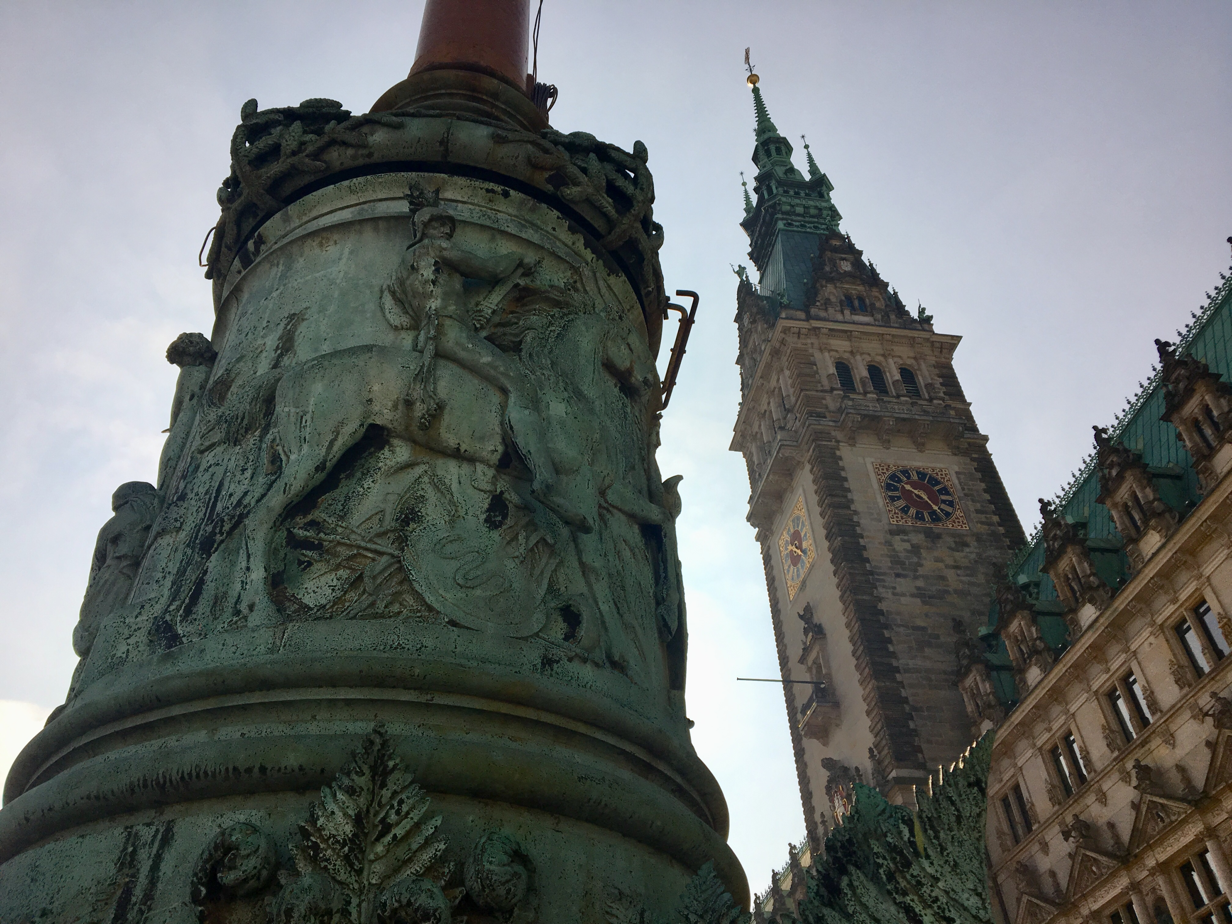 Detalles de los relieves de la fuente del Ayuntamiento de Hamburgo