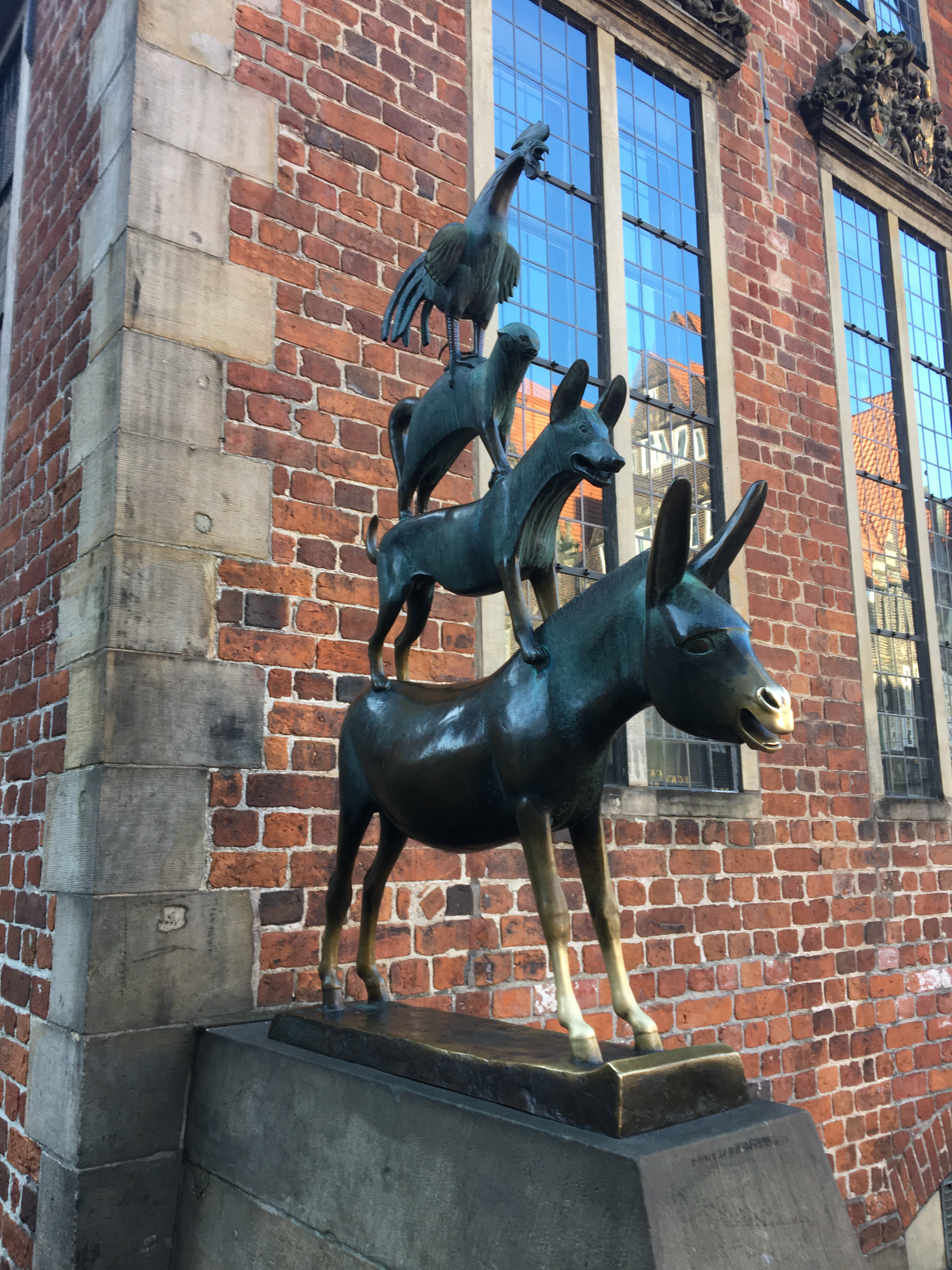 Escultura de bronce de animales en el barrio de los músicos de Bremen. Los músicos de Bremen (Die Bremer Stadtmusikanten) es un cuento de los hermanos Grimm. Transcurre en la Baja Sajonia, en los alrededores de Bremen.