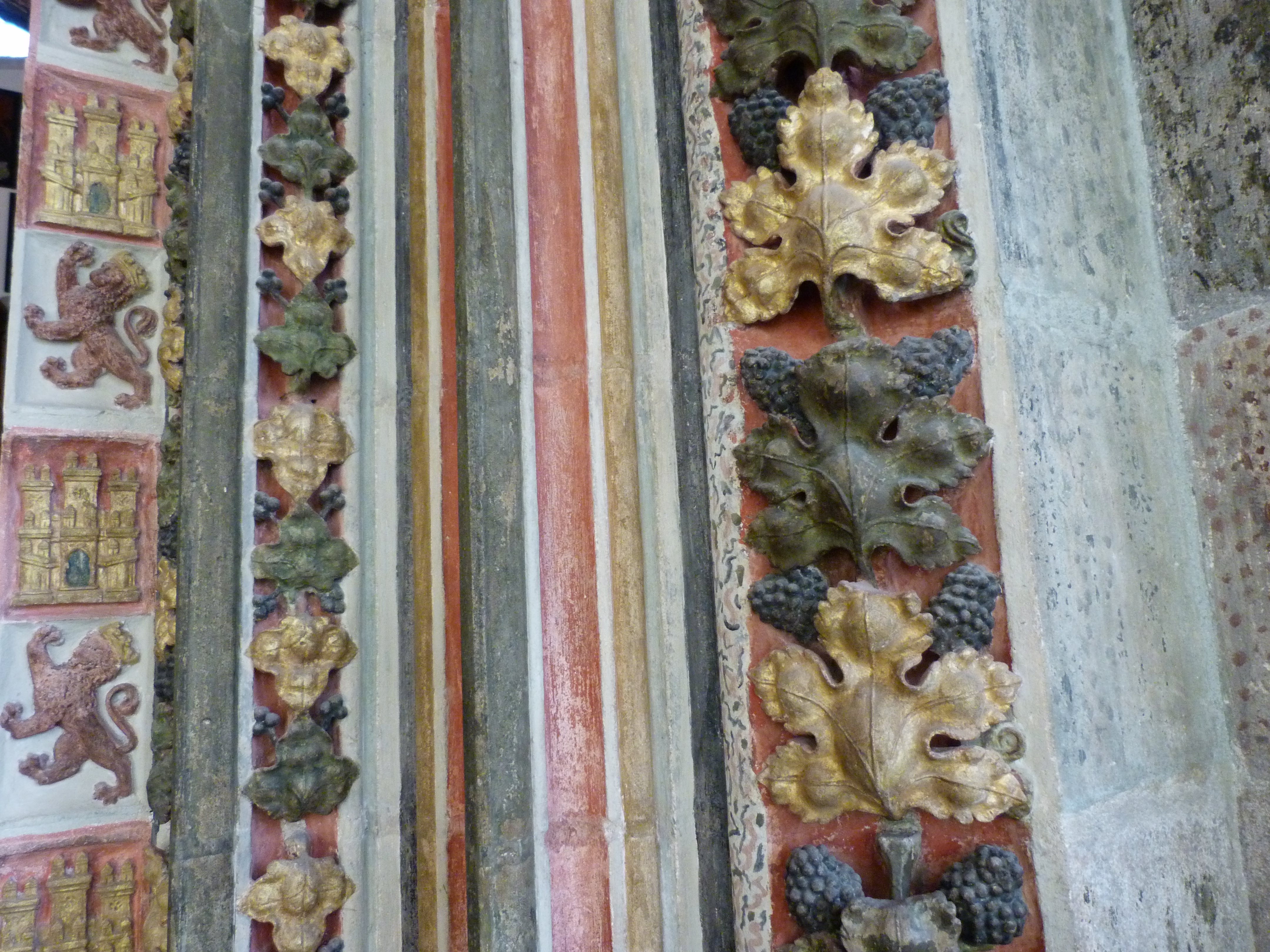 Arquivoltas que simulan flores y escudos del reino, se encuentran en la capilla del piso superior del claustro de la catedral de Burgos.