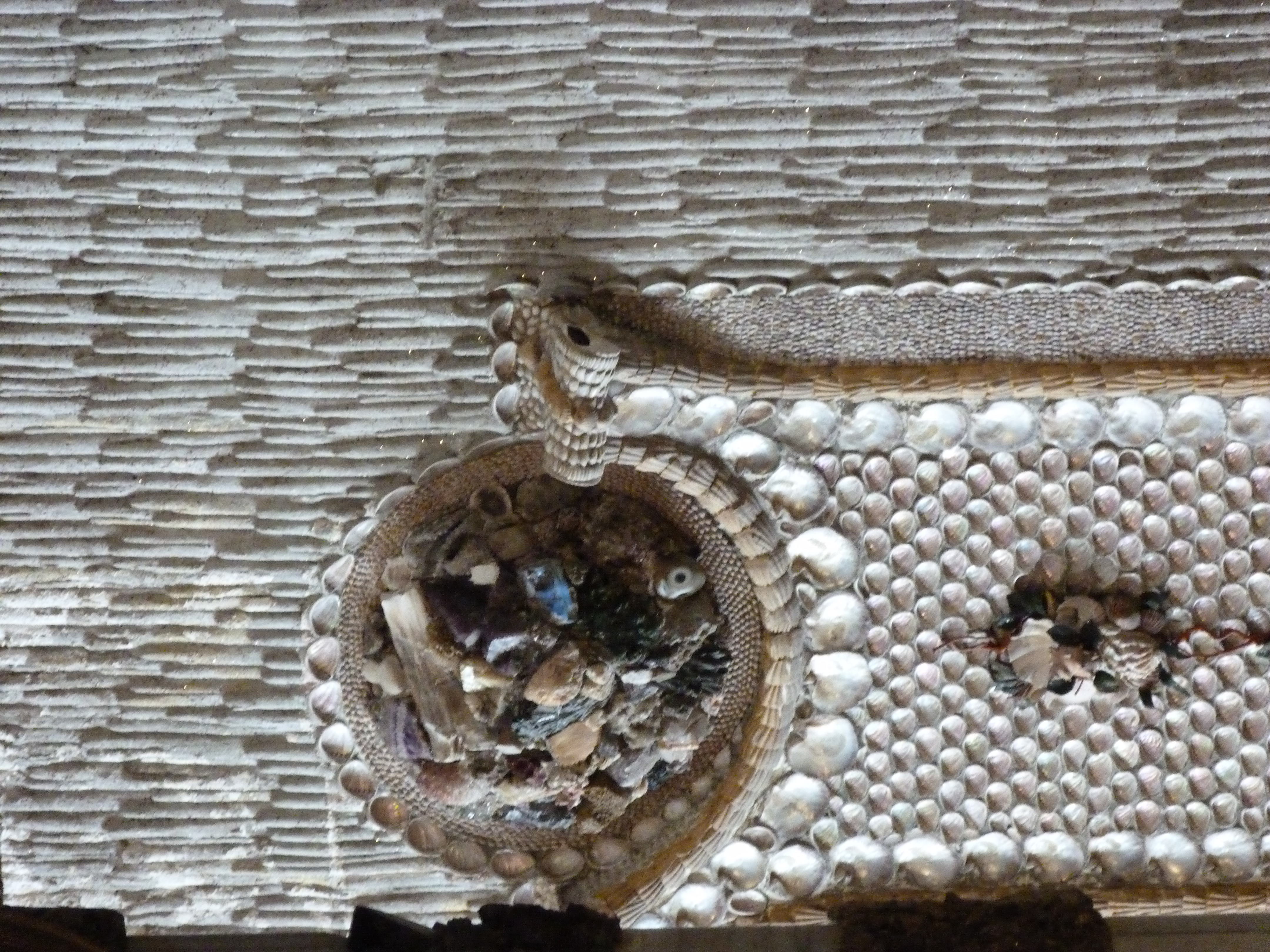 Primer plano de los materiales que forman la sala de las conchas en el Palacio Potsdam