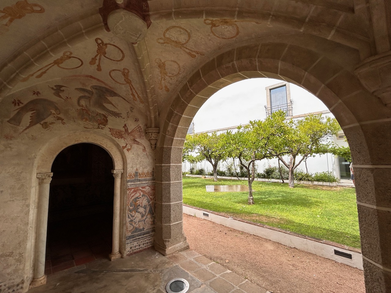 Jardín de las casas pintadas de Évora donde se encuentran frescos, son los únicos encontrados en un exterior que sobreviven en Portugal desde principios del siglo XVI e ilustran animales y criaturas imaginarias.