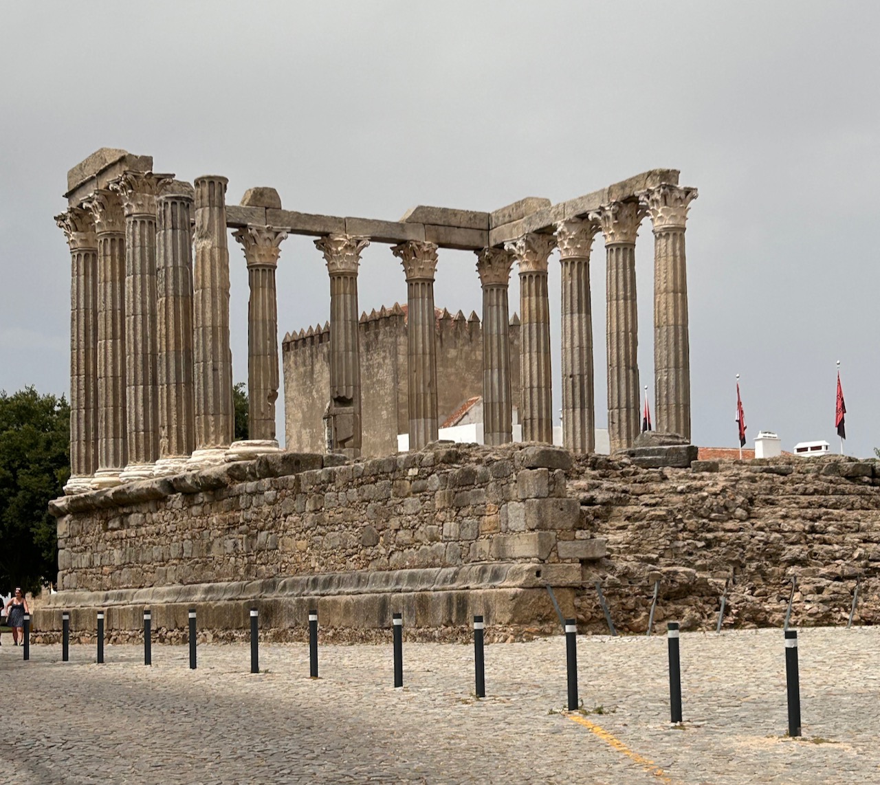 Vista del templo romano de Évora o templo de Diana en Évora.