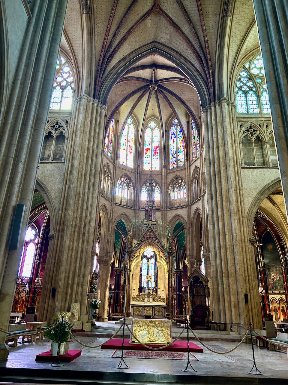 Interior de la catedral de Bayona con vidrieras de estilo de Chartres.