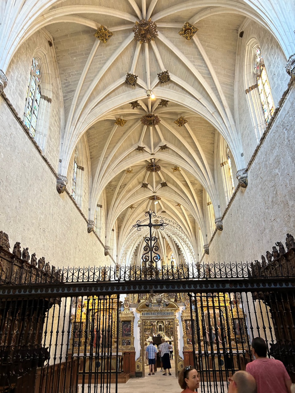 Un espacio dedicado a penitencia y oración con una sillería tallada en nogal y al fondo el presbítero con el retablo y los sepulcros de Juan II, Isabel de Portugal y el infante Alfonso. Los enterramientos fueron realizados por Gil de Siloe entre 1485 y 1493