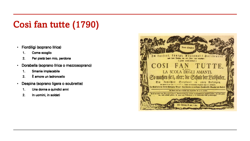 arias destacadas de los roles de soprano y mezzosoprano de la ópera Così fan tutte