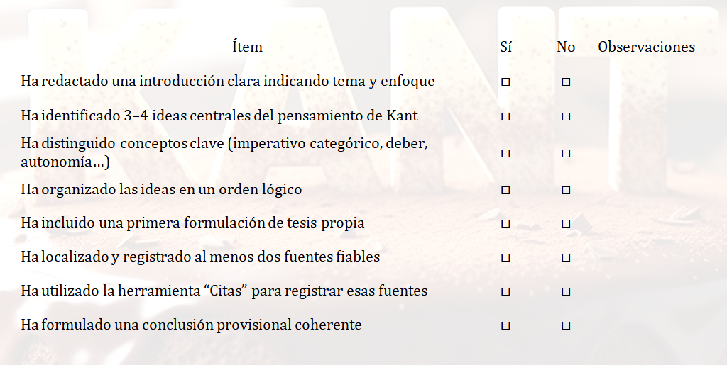 La SdA aborda el pensamiento de Kant desde una perspectiva crítica y formativa, permitiendo al alumnado comprender los fundamentos de su teoría del conocimiento y de su ética de la autonomía como pilares de la filosofía moderna.