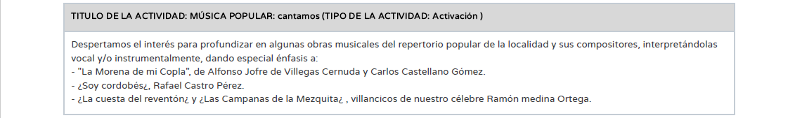 A través de esta SdA, nos acercaremos al Flamenco (y no solo el 16 de Noviembre) y relacionaremos música y pintura, en una aproximación al patrimonio artístico cordobés, a fin de conocerlo, valorarlo y difundirlo.