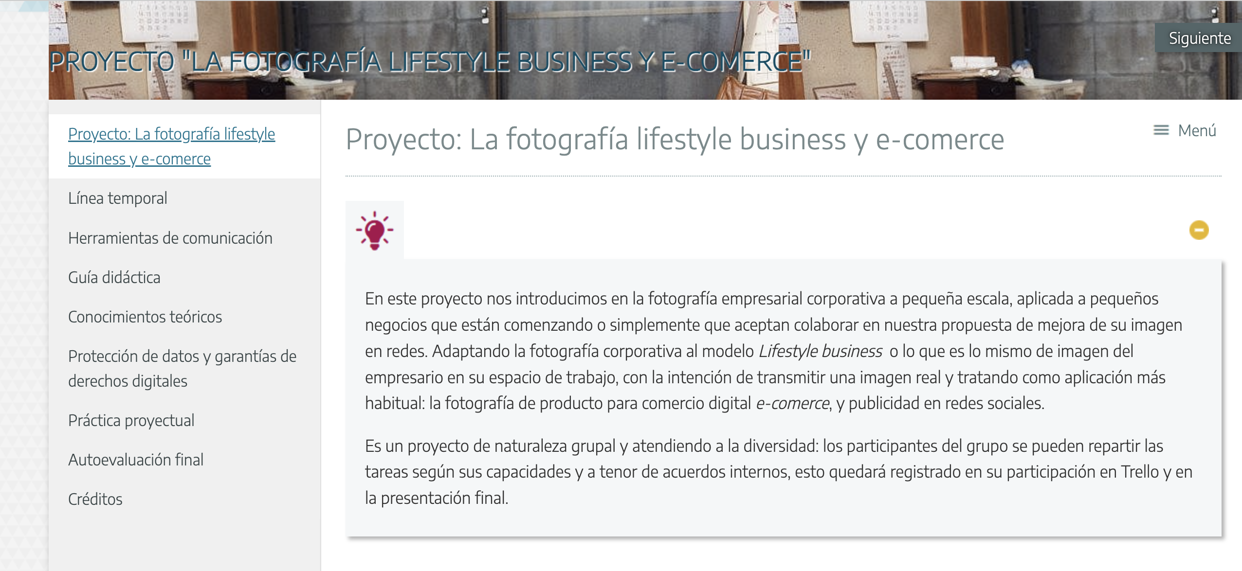 REA de un proyecto educativo de fotografía empresarial corporativa modelo Lifestyle business y fotografía de producto para e-comerce, y publicidad en redes sociales.