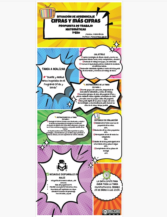 Se trata de una tarea de matemáticas en la que el alumnado trabajará distintas operaciones a través de la sección de cifras del programa de televisión de Cifras y letras.