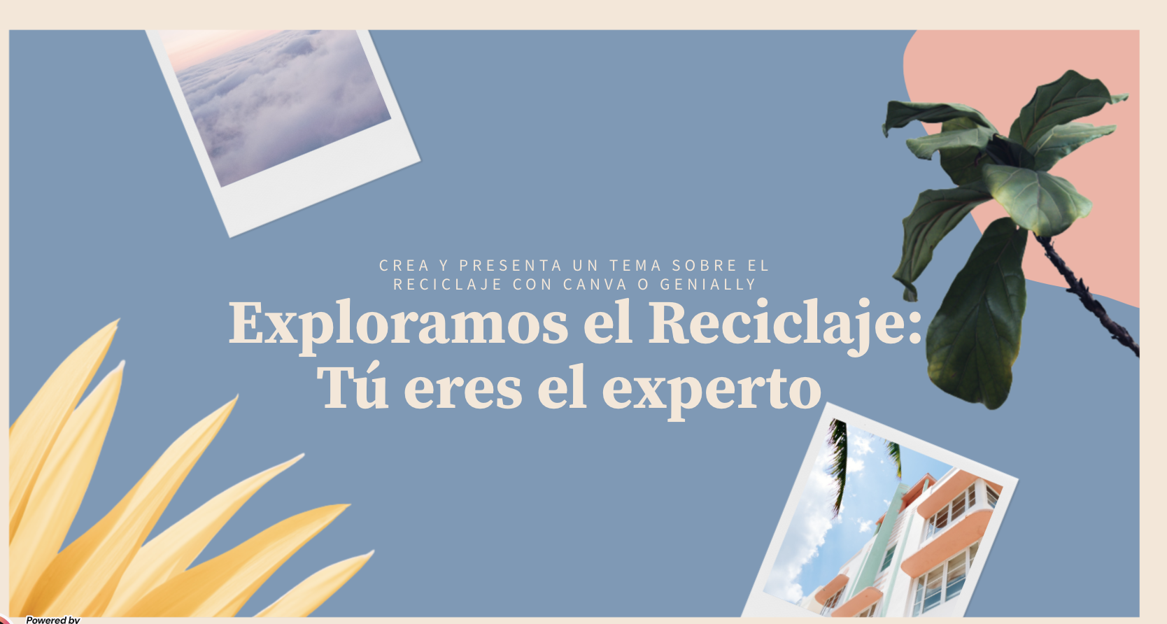 • "Presenta y convence: expertos en reciclaje" • Los alumnos de forma individual,elaborarán una presentación como Can-va,Genially o Keynot en la que explicarán a sus compañeros uno de los concep-tos clave del tema de reciclaje (como las 3R, economía circular,etc) Cada uno se-rá responsable de investigar, diseñar y exponer su contenido de forma clara, creativa y comprensible para el resto de la clase. El objetivo es que se conviertan en “expertos” de su tema y enseñen a los demás lo aprendido.