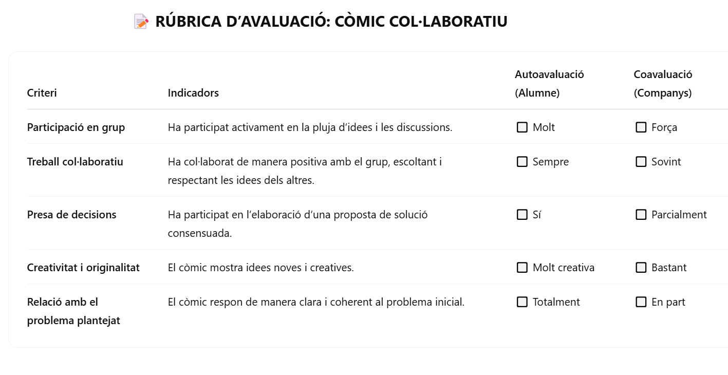 Proposta de treball en equip, a classe, en 2n ESO, de fer un còmic.