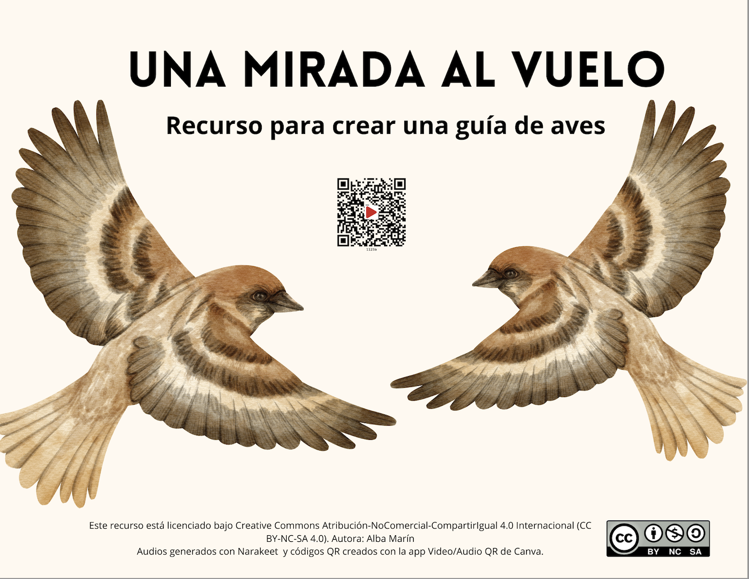 Las aves cumplen funciones clave para que la vida en la Tierra sea posible y sostenible. Sin embargo, muchas especies se encuentran en peligro debido a la contaminación, la pérdida de hábitats y la degradación de sus zonas de descanso. Conscientes de esta problemática y aprovechando la riqueza natural de nuestro entorno, se propone la creación de una guía por parte del alumnado de 4º de Educación Primaria donde se mostrarán diferentes aves de la ciudad de Elche y quedará expuesta en la biblioteca del centro. Así pues, el recurso presentado forma parte del producto final de una SA donde los discentes, a través de dispositivos digitales, investigarán las características, hábitats y el estado de conservación de estas especies con el fin de fomentar el respeto y la protección de la biodiversidad local.