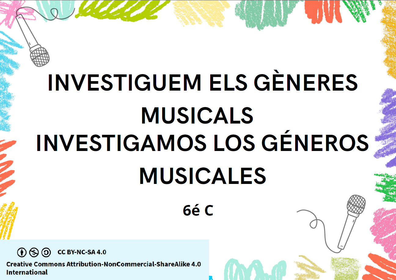 Infografía con información para realizar una actividad sobre los géneros musicales para los alumnos de sexto de primaria