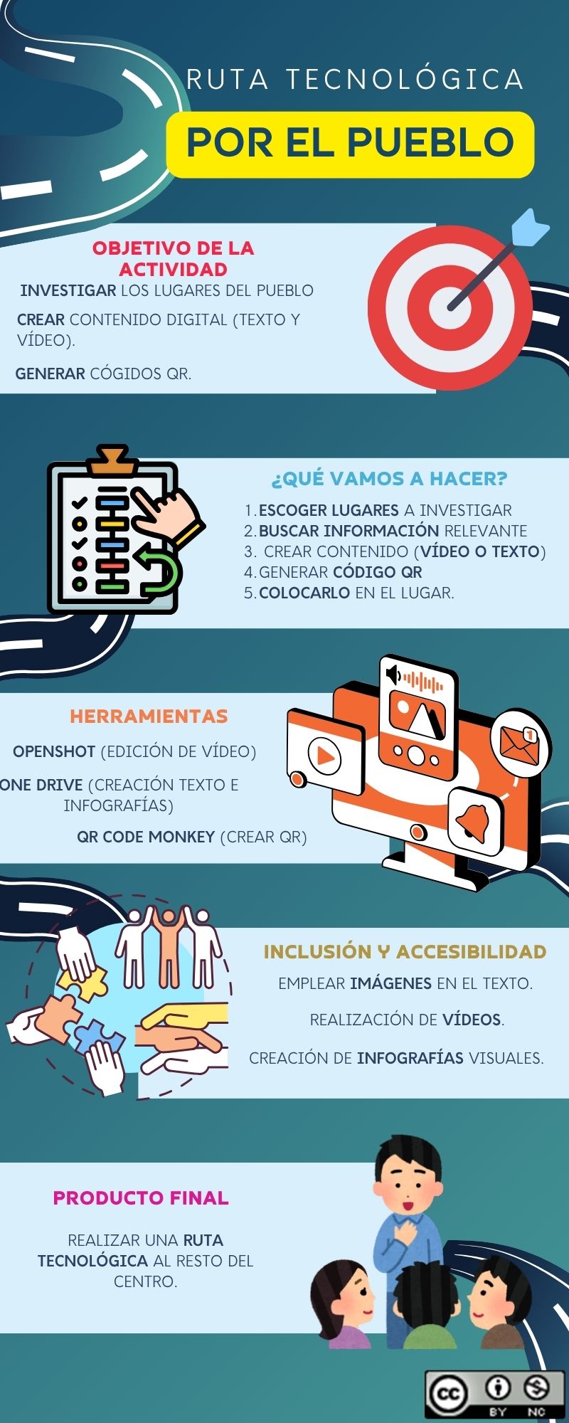 Infografía creada para explicar de manera sencilla la realización de una ruta tecnológica por el pueblo.