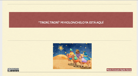 “TIRORÍ,TIRORÍ” MI VIOLONCHELO YA ESTÁ AQUÍ El objetivo de esta SA es el acercamiento del aula de violonchelo a la tradición popular del entorno del alumno. Aproximación al villancico valenciano ubicándolo en el espacio y en la fecha que se canta, mediante la búsqueda de información a través del enlace sugerido por la profesora. Escuchar el villancico en el enlace de la web sugerida. Interpretar con su instrumento dicho villancico mediante una partitura-recurso creada por la profesora y adaptada a su diseño curricular