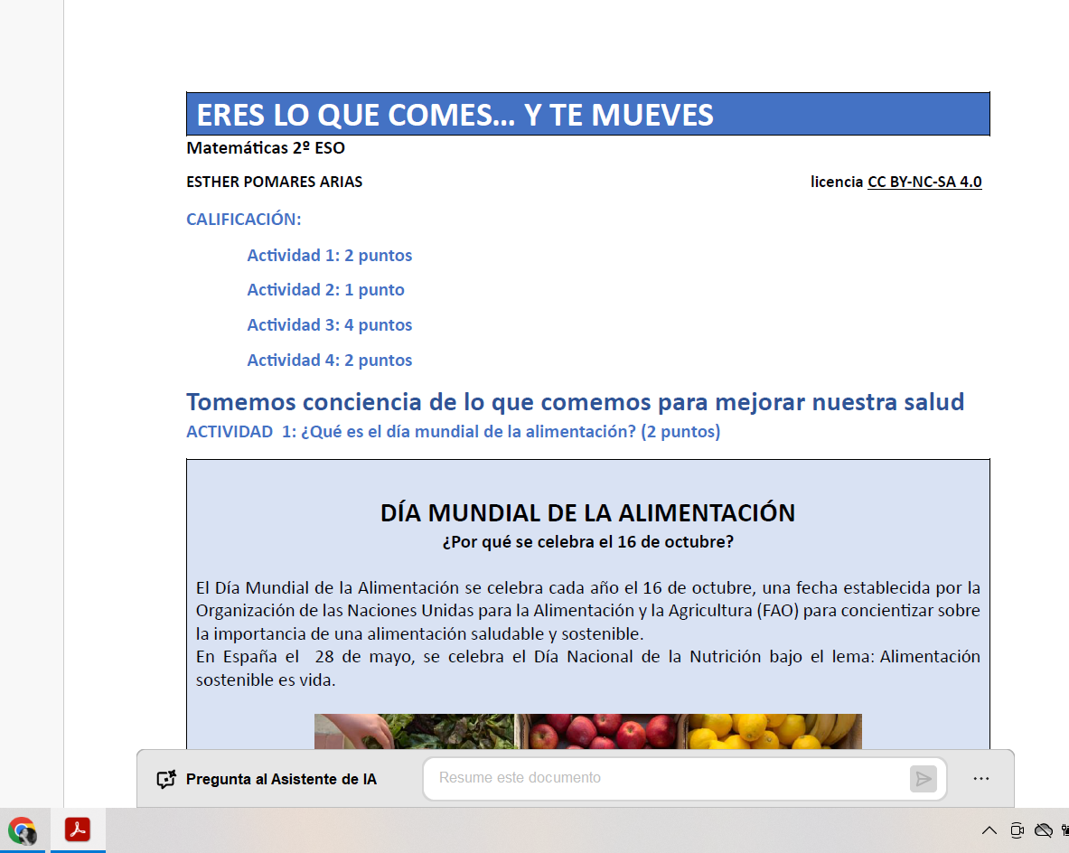 El objetivo de la actividad es conocer y valorar la relación entre la alimentación, la actividad física y la salud . El alumnado debe analizar nutricionalmente lo que come en sus hogares, a través de la observación de alimentos que hay en su nevera, compras, menus diarios, etc…. Se confeccionará una gráfica de la realidad, y otra de los valores de menús saludable. .Una vez hecho un estudio de la realidad, los alumnos diseñarán menús diarios, así como lista de compra y plan de actividad FAMILIAR...