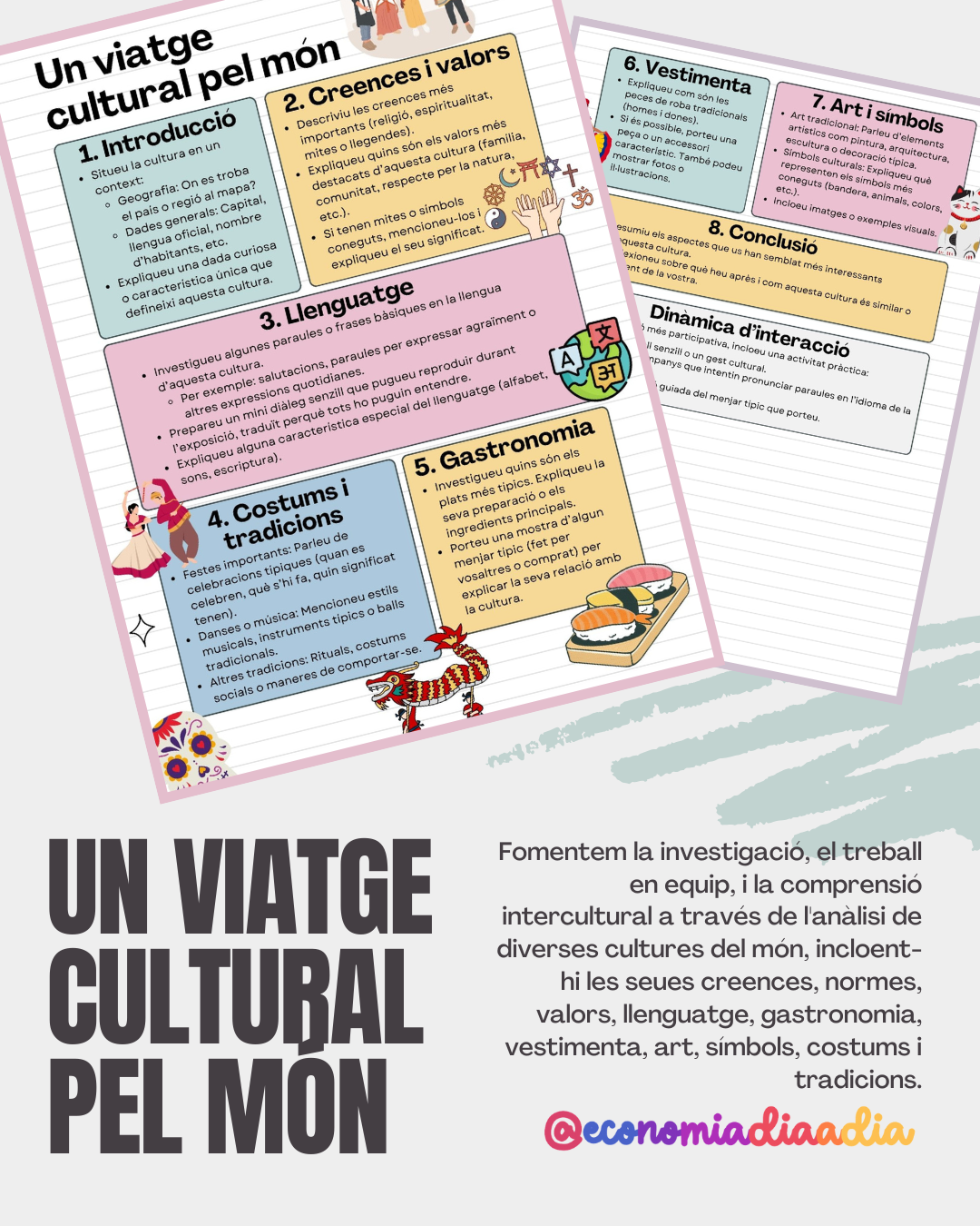 Activitat centrada en la investigació d’una cultura, amb l’objectiu de reflexionar sobre la diversitat, fomentar el respecte intercultural i treballar habilitats comunicatives i digitals.