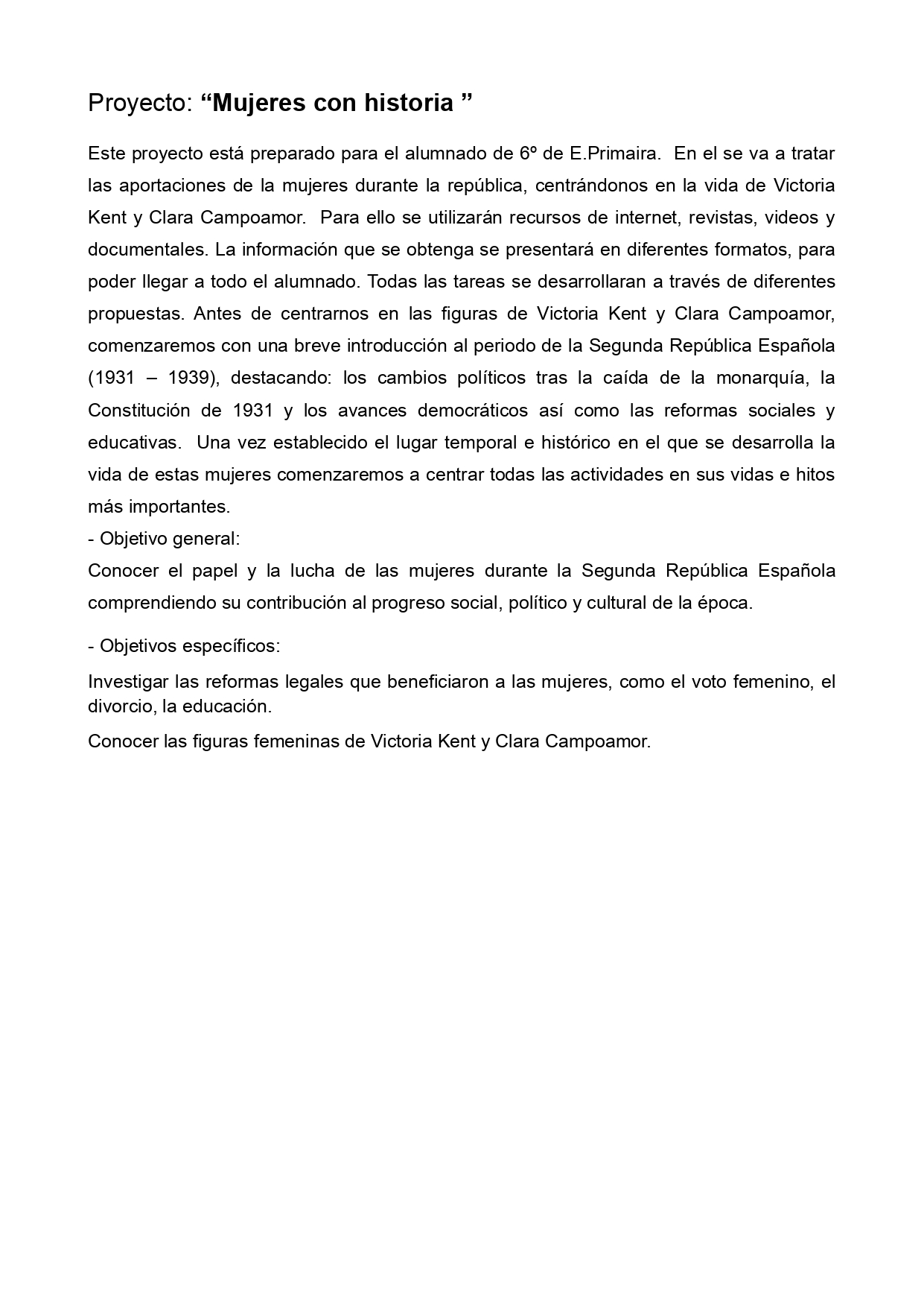 Se trata de un pequeño proyecto para trabajar la historia de la República Española y especialmente el papel de las mujeres.